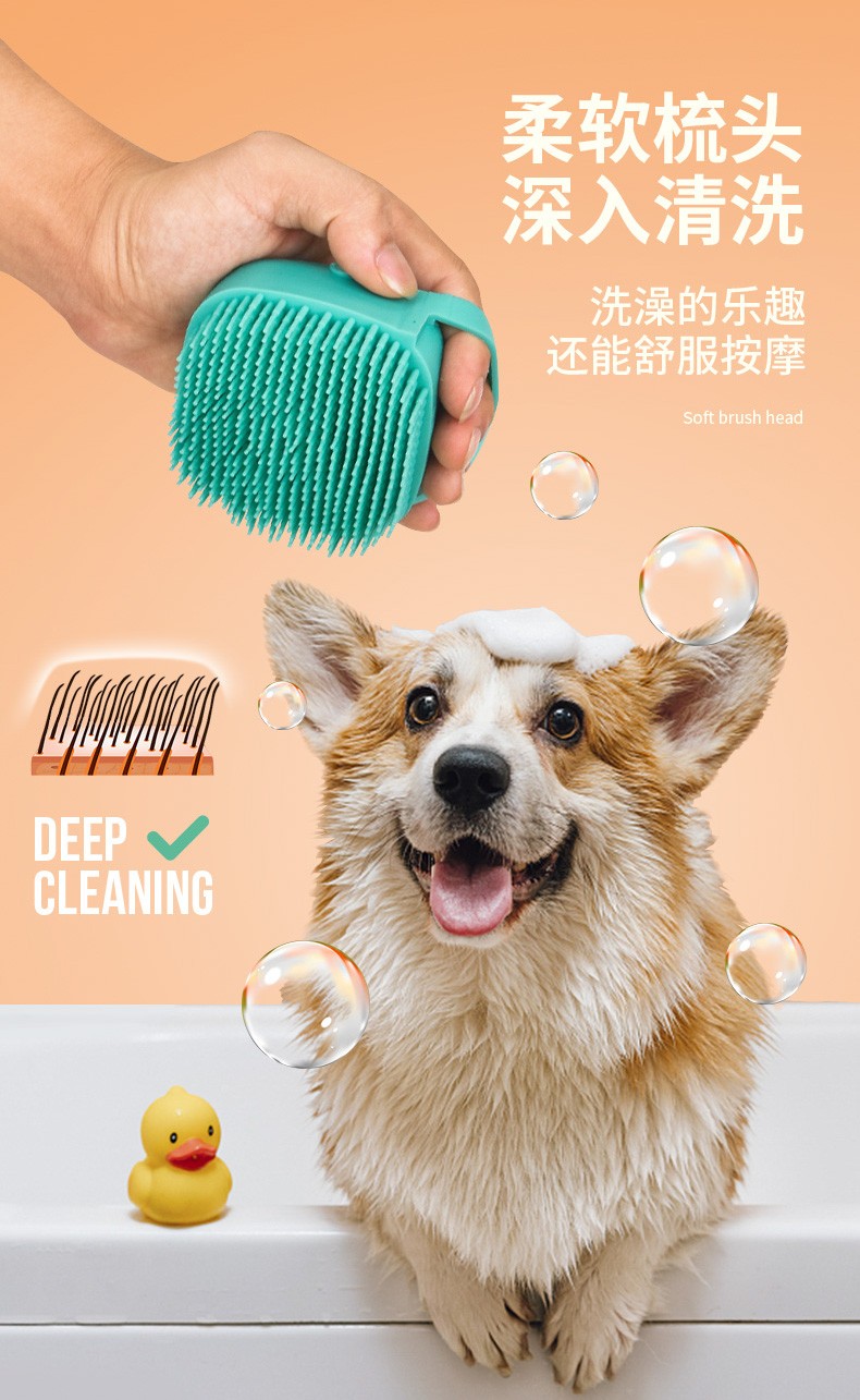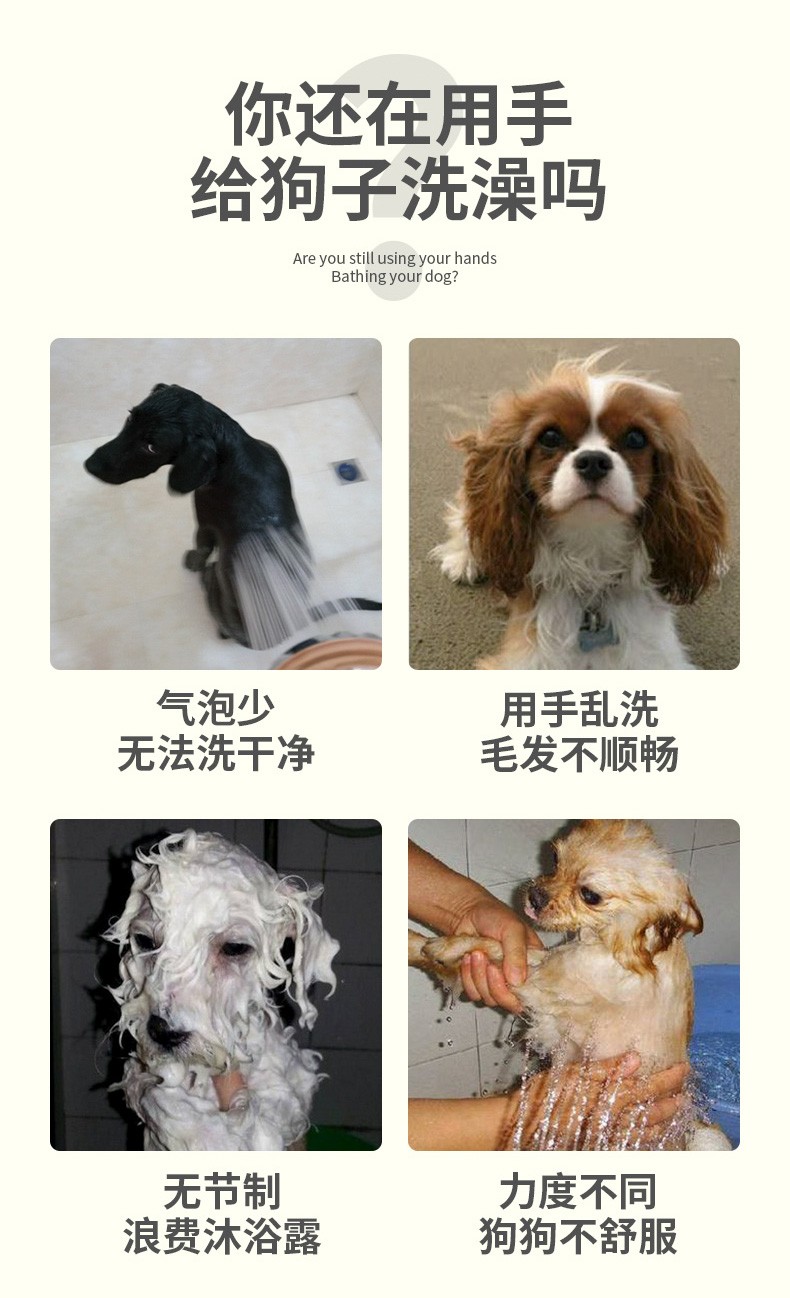 • Cepillo multifuncional para mascotas: Este cepillo para mascotas tiene un diseño dispensador de champú y no solo puede proporcionar un lavado rápido y completo de sus mascotas, pero también masajea la piel para mejorar la circulación sanguínea.