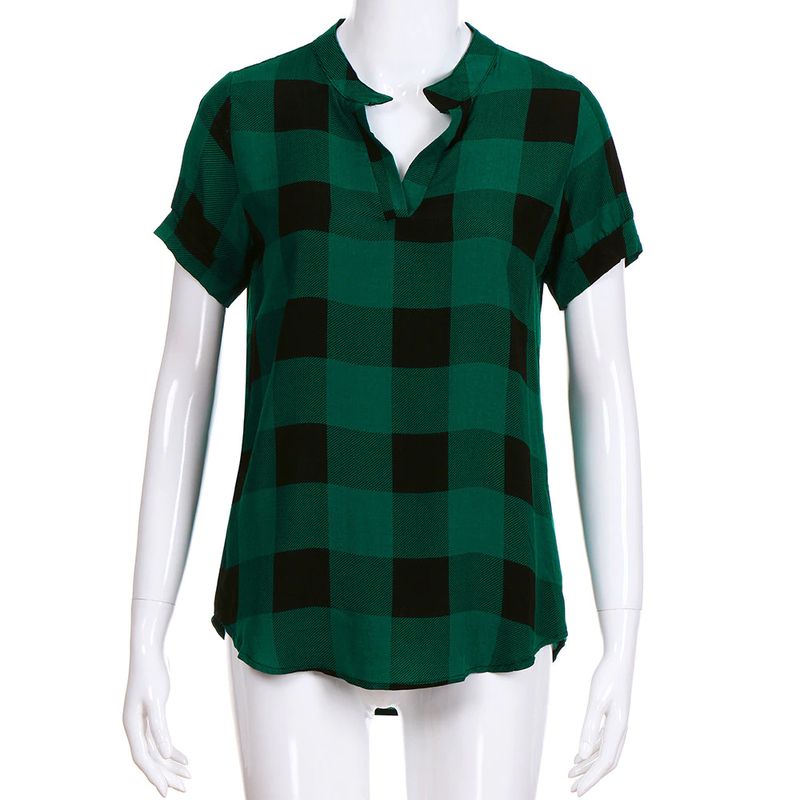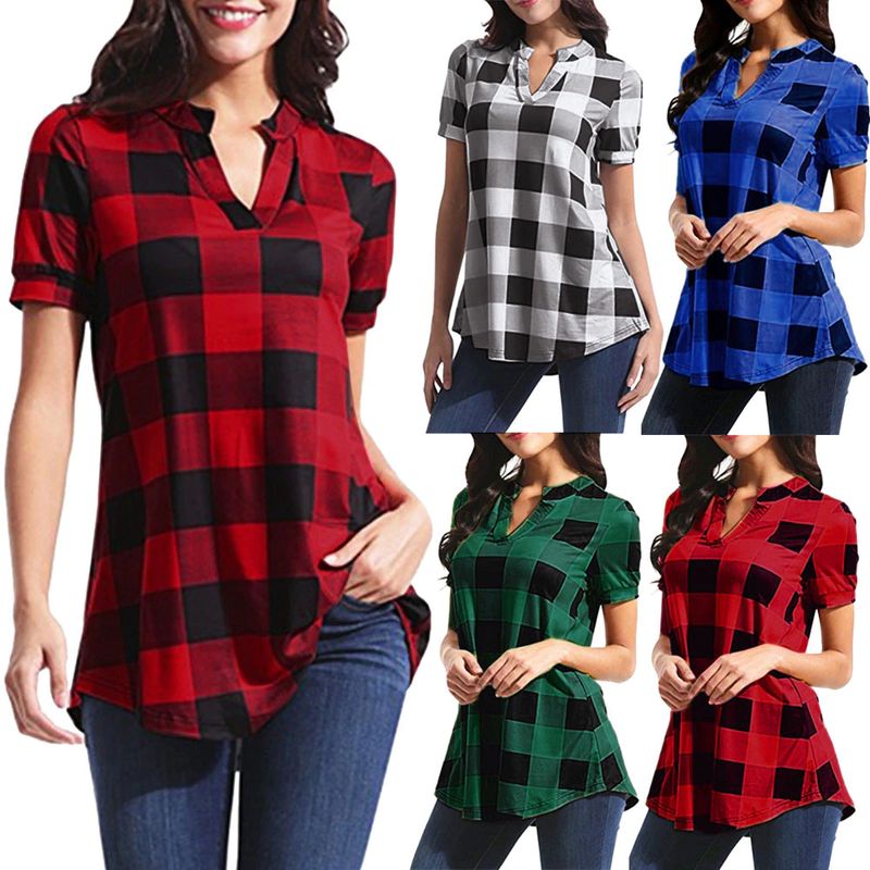 Camisa Con Estampado A Cuadros Para Mujer, Túnica Informal De Manga Corta, Tops Sexys Con Cuello En V, Blusa Cómoda Para Mujer De Verano 5Xl De Talla Grande
