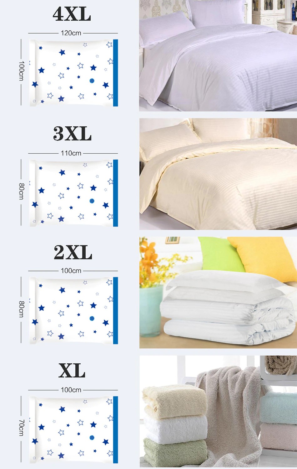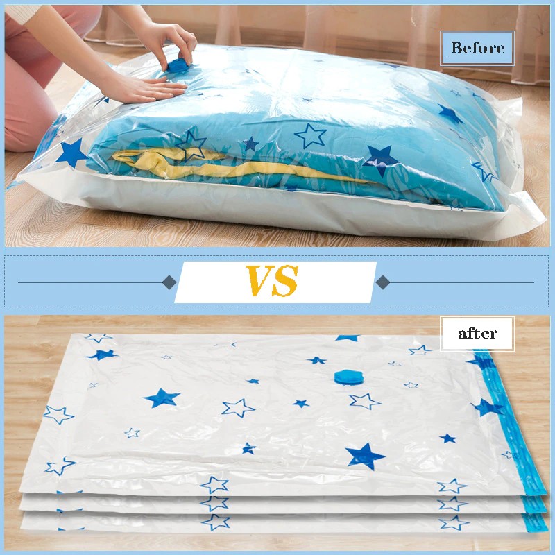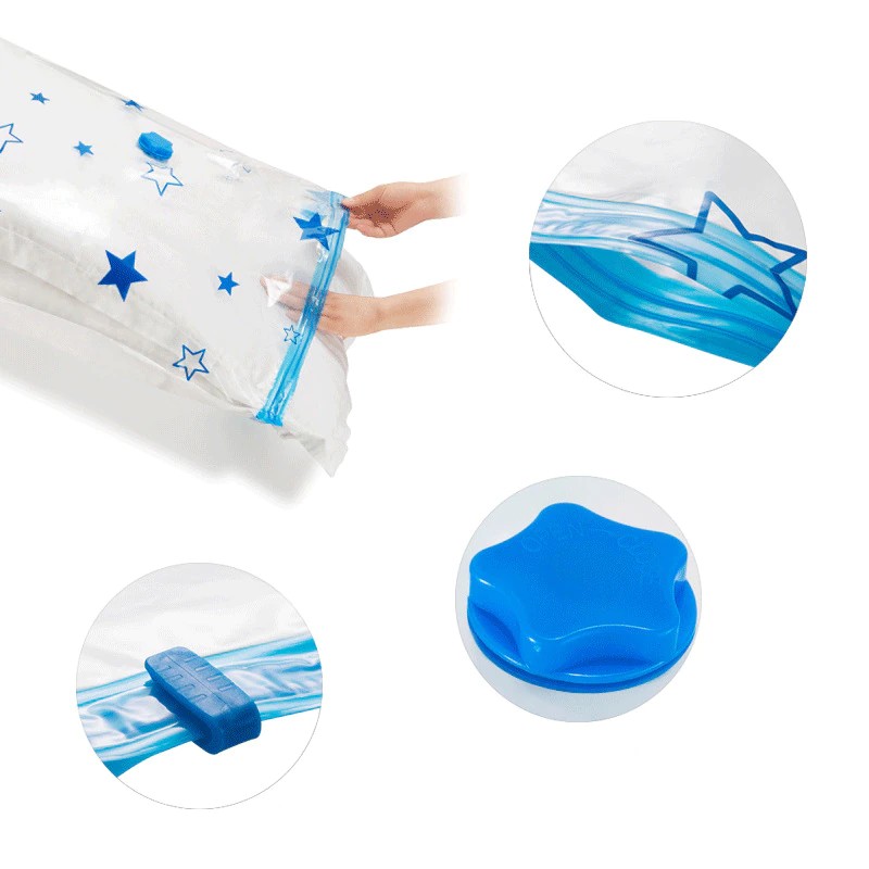 Nombre: Bolsa de compresión al vacío Material: PA + PE PET Color: estrella Tamaño: siete tamaños Función: plegable, gran capacidad, a prueba de humedad, a prueba de polvo, a prueba de insectos, a prueba de moho, ahorro de espacio, supersoporte de carga, suave y resistente al desgaste, sin olor, simple y elegante, fácil de almacenar, diseño al vacío, patrón lindo, espacio de almacenamiento limpio y buen ayudante Escenarios aplicables: dormitorio, sala de estar, estudio, etc.