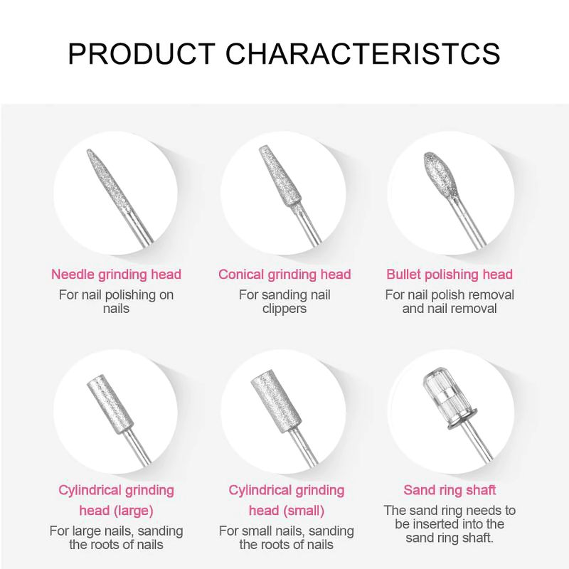 Taladro eléctrico profesional para uñas, herramienta de manicura para manicura, 6 Bits
