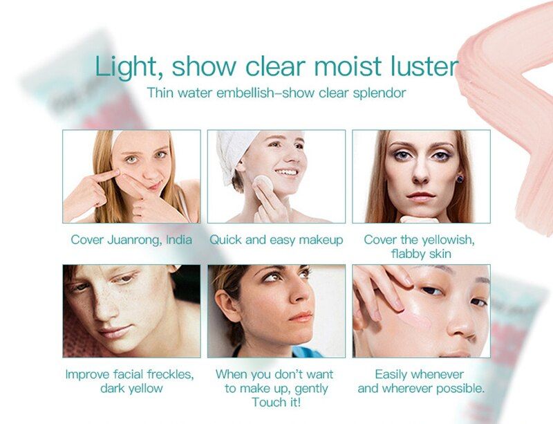 Minimiza los poros, suaviza y suaviza la piel, hidrata y aísla el polvo, los rayos UV te hacen lucir brillante, encantador, fácil de aplicar y quitar, ligero, fácil de llevar.