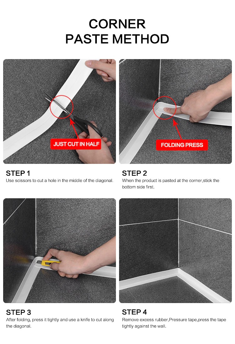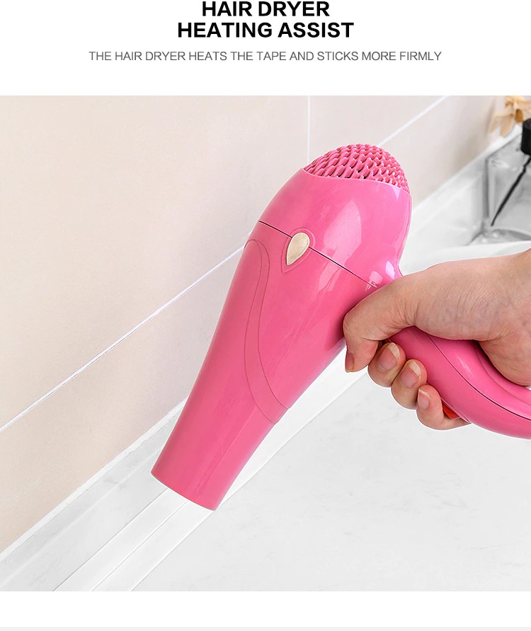 Adecuado para baño de larga duración, resistente al moho para sellar alrededor de los baños, paneles y bandejas de ducha rápido, limpio, fácil de instalar simplemente desenrollar, retire el papel de respaldo y presione en su lugar