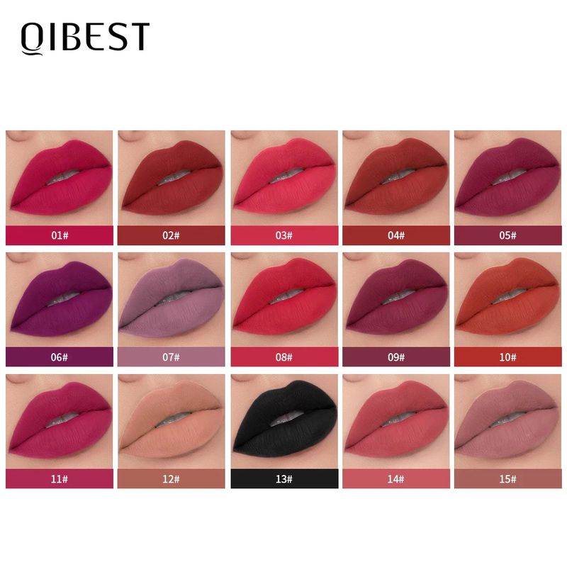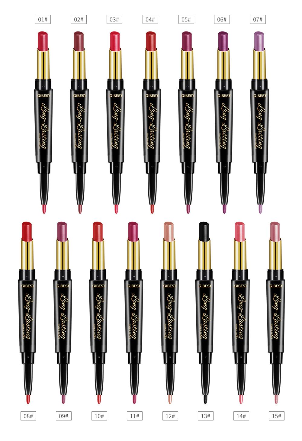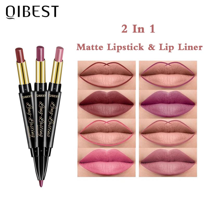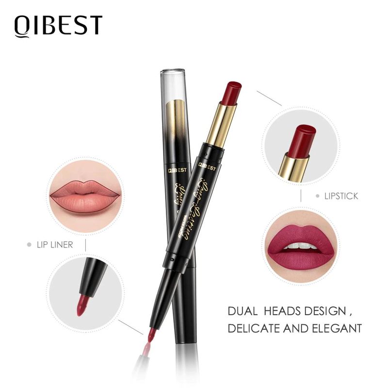 Pintalabios mate de terciopelo QIBEST 2 en 1 Lápiz Delineador de labios resistente al agua contorno duradero desnudo Sexy tinte de labios rojo crema hidratante de larga duración Lipliner cosméticos