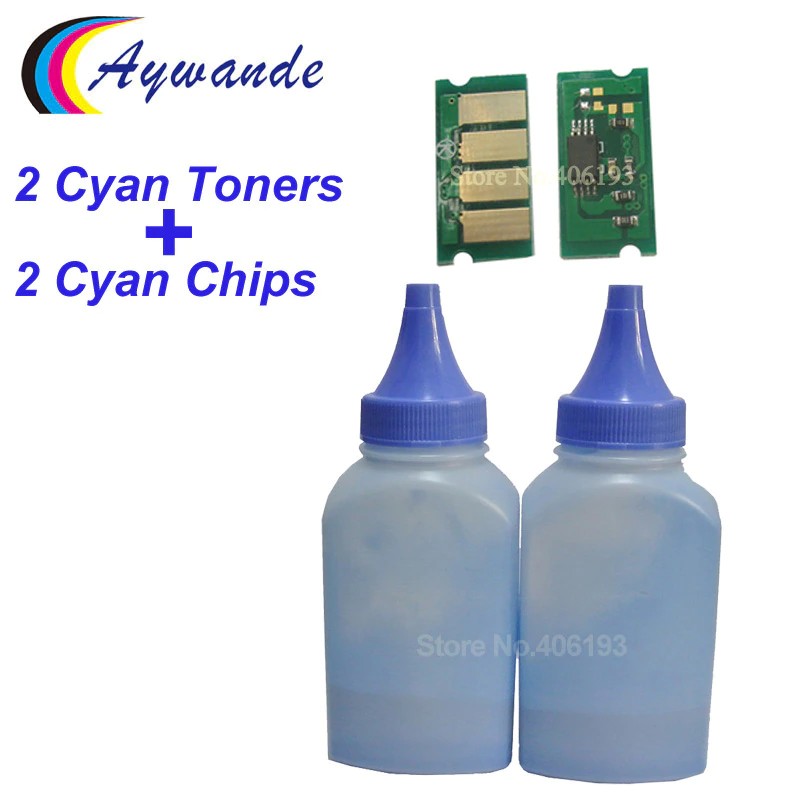 2 uds. x polvo de tóner cian + 2 uds. x chip de cartucho de tóner cian
