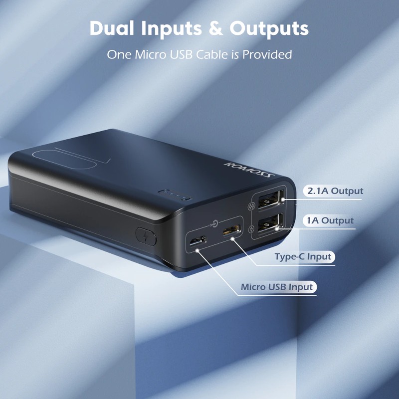 El último banco de energía Romoss tiene un diseño elegante y simple para uso diario, vuelos largos, viajes, camping u otras actividades al aire libre, emergencias, viajeros y familias.
