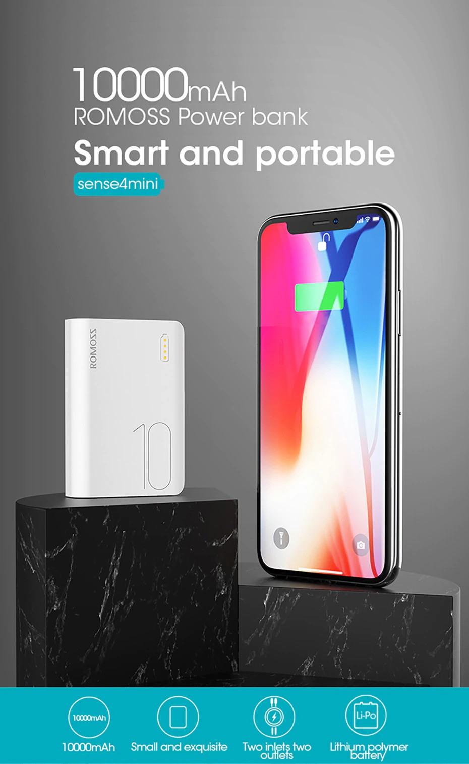 Romoss-Mini Batería Externa Sense4, Cargador Portátil De 10000Mah, Carga Rápida, Para Iphone 13 Y Xiaomi