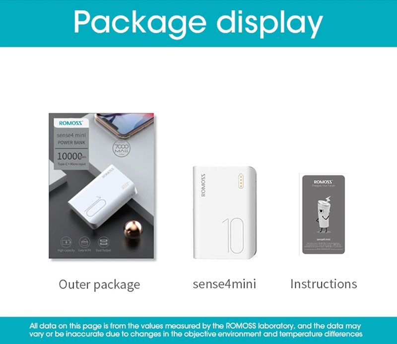 1 Mini banco de energía Romoss 10000mAh con caja de venta al por menor