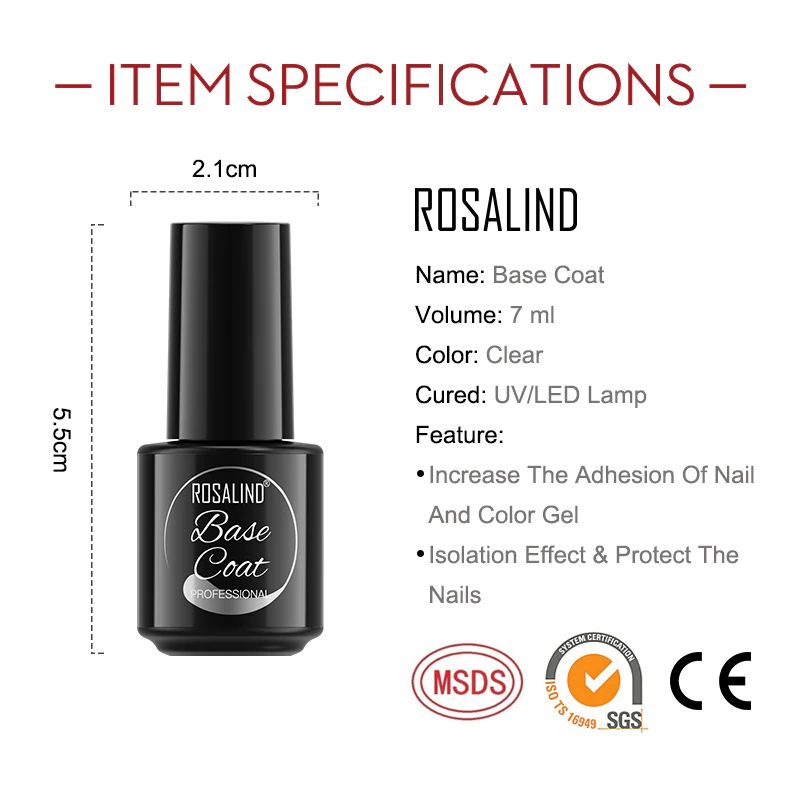 Rosalind-Juego De Capa Base Y Capa Superior, Esmalte De Uñas Gel, Laca Gel Uv Led De Larga Duración Base Para Manicura, 7Ml
