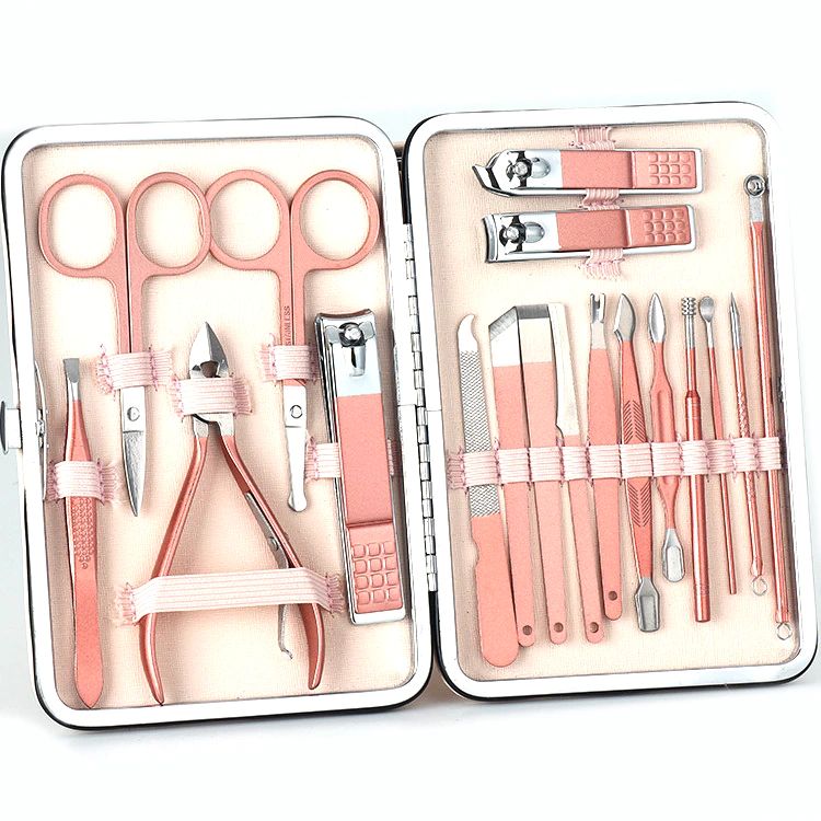 Juego De Manicura Profesional De Acero Inoxidable, Kit Cortaúñas De Color Oro Rosa, 18 Herramientas