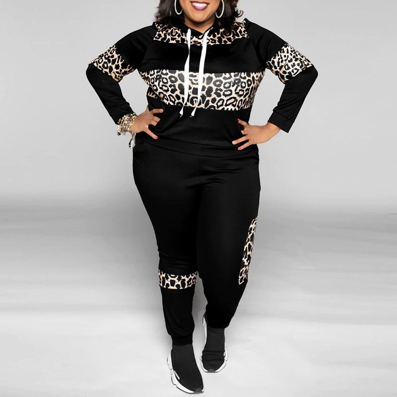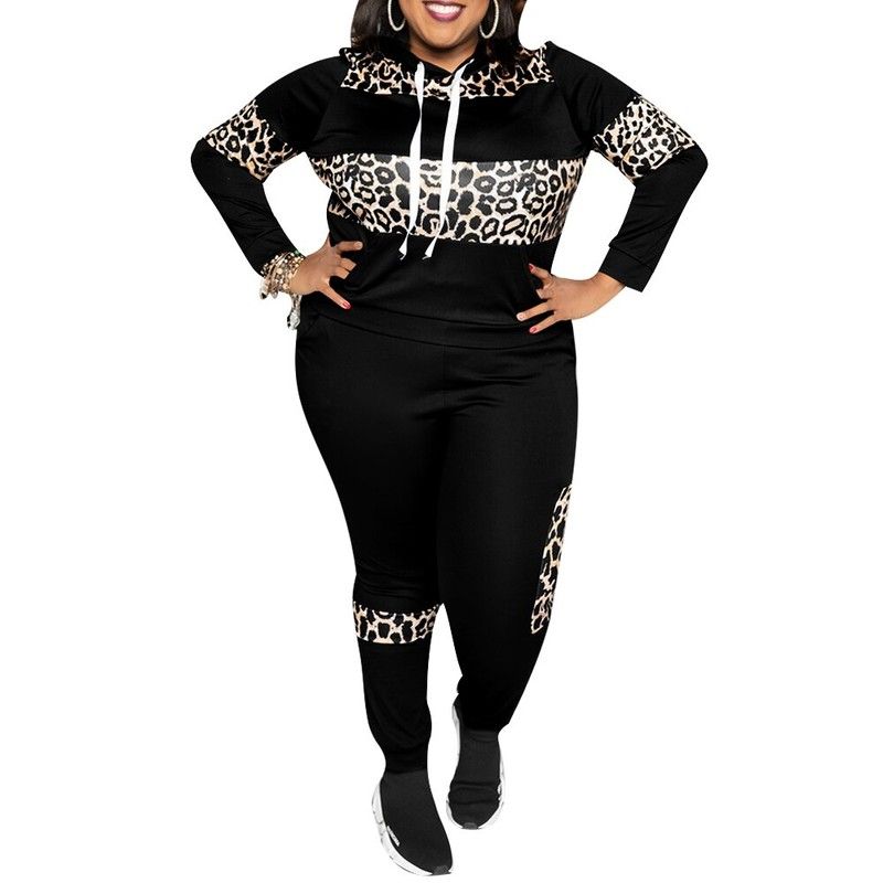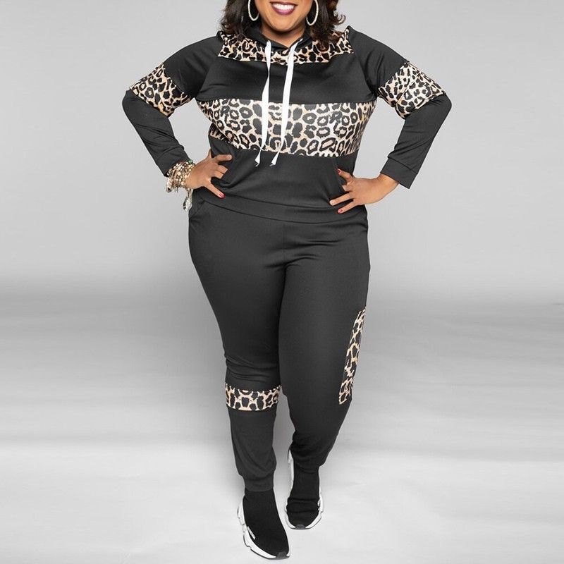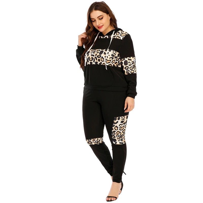 Conjunto De Ropa De 2 Piezas Para Mujer, Trajes Mujer Talla Grande, Chándal Con Estampado De Leopardo, D30