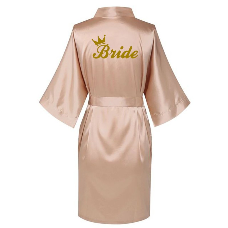 Batas De Novia Y Damas De Honor, Albornoz Seda Satén Talla Grande, Traje Vestido Ropa De Dormir, Color Rosa Dorado