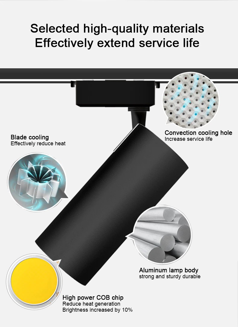 ★La fuente de iluminación de la pista COB es más concentrada, apunte bien, brille brillante