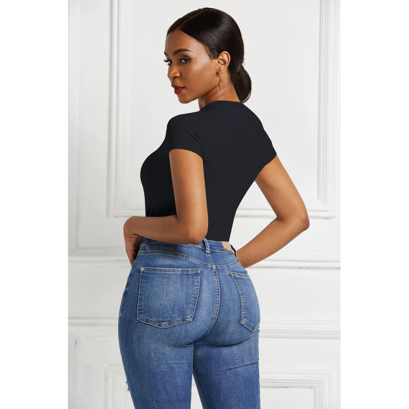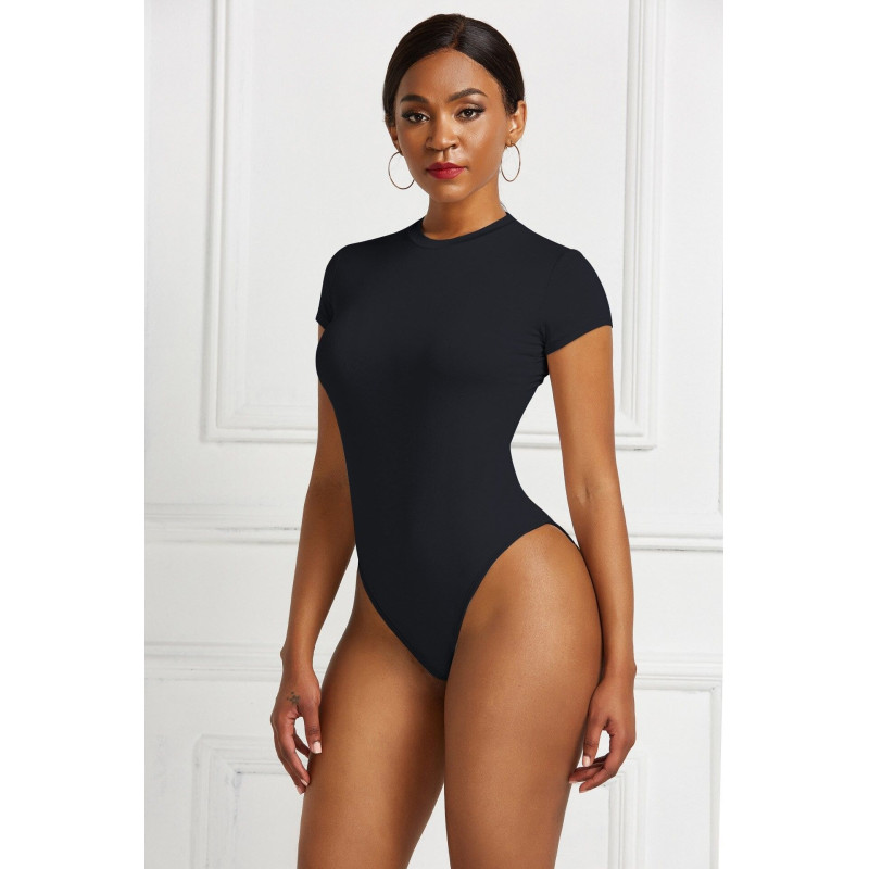 Mono Sexy De Una Pieza Ajustado De Manga Corta Cuello Redondo Abierto Básico Blanco Negro Rojo Mono De Cuerpo Para Mujer