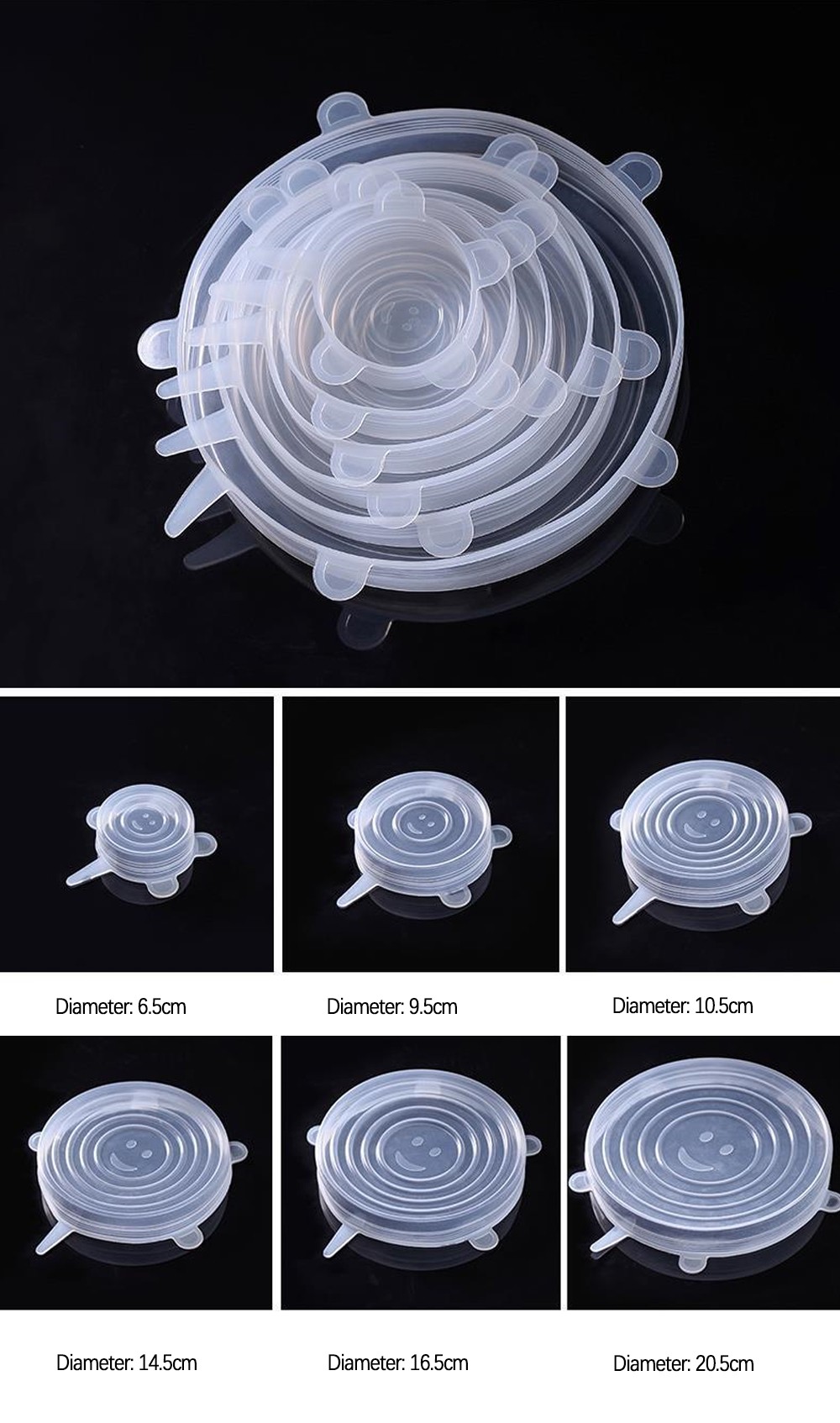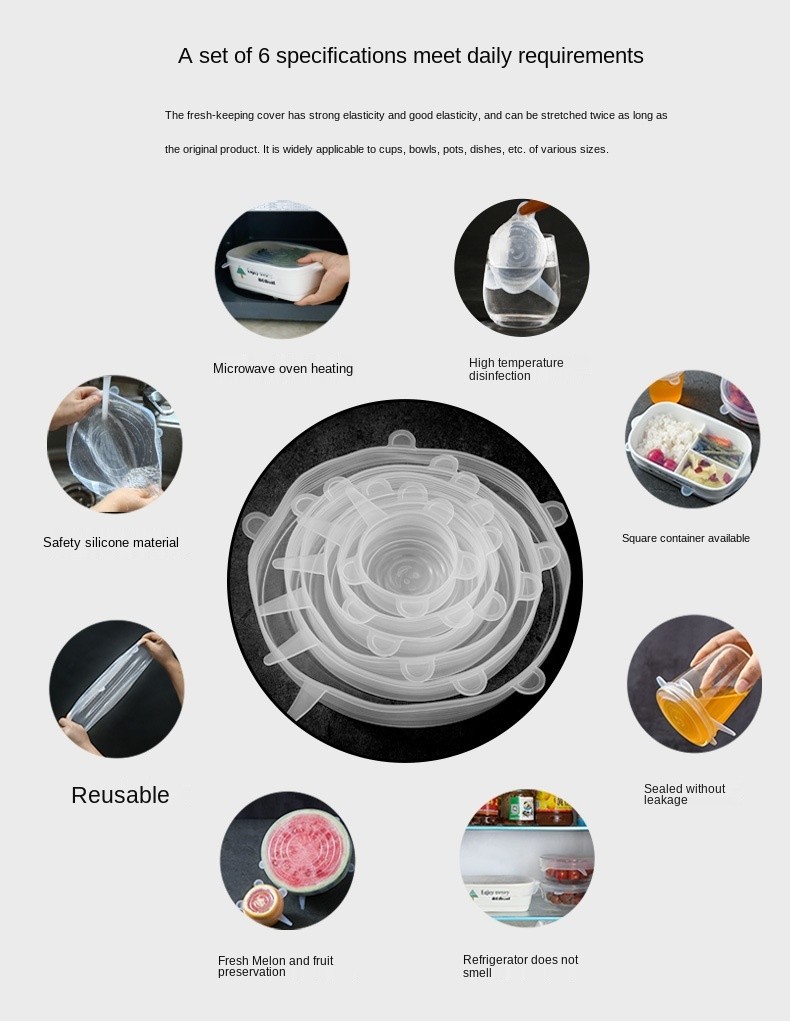 Tapas Elásticas De Silicona Reutilizables, Duraderas Y Desechables, Para Conservar Alimentos Frescos, Paquete De 6 Unidades
