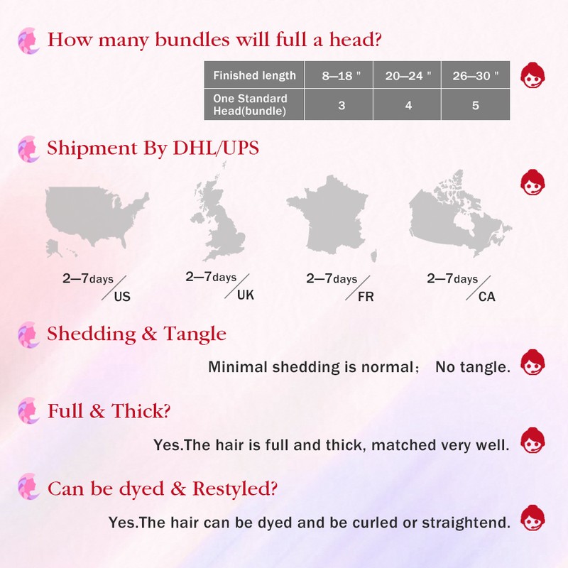 Para la cabeza completa: 3-6pcs haz una cabeza completa