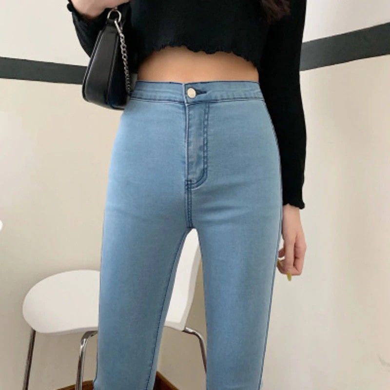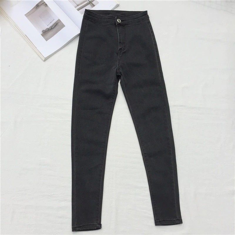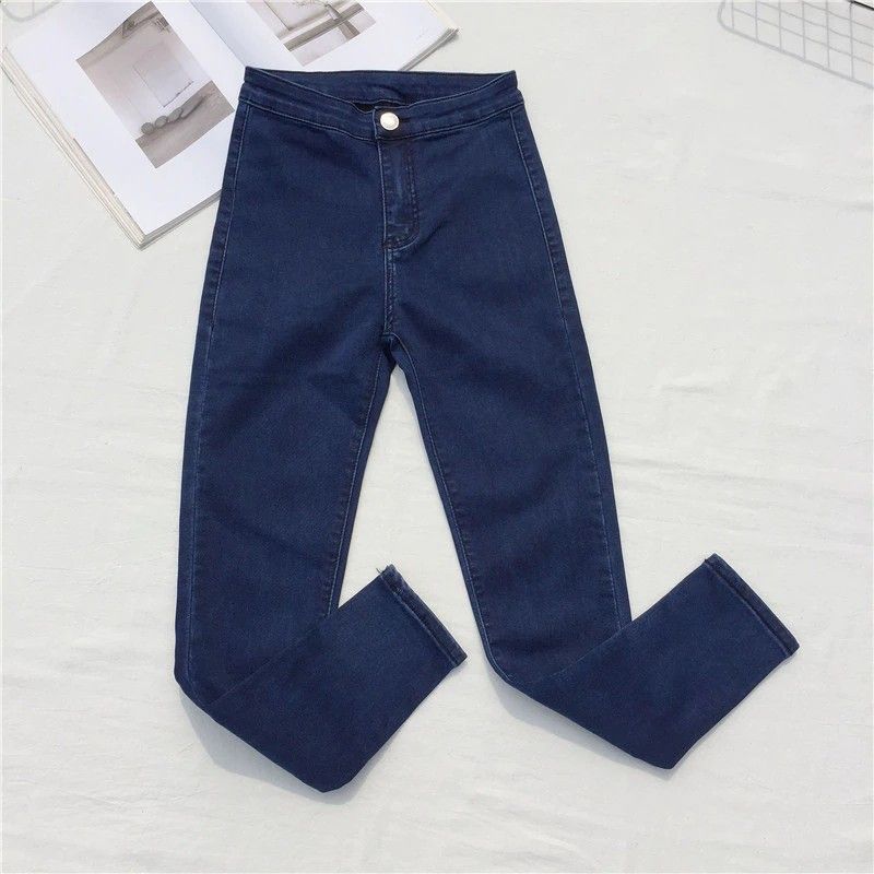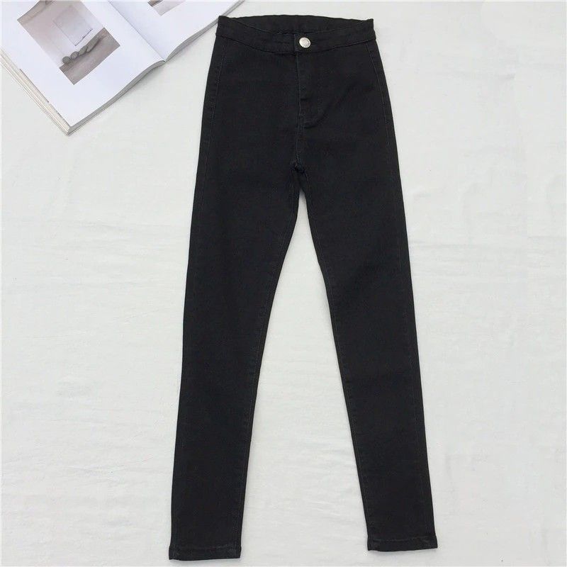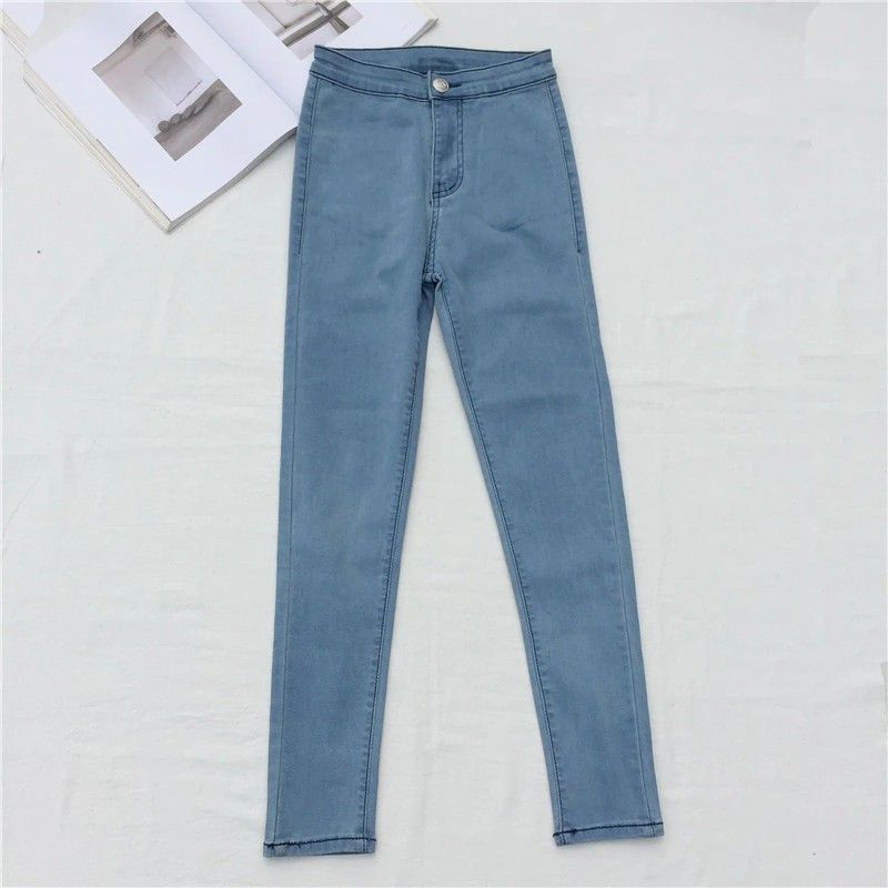 Pantalones Vaqueros Ajustados De Cintura Alta Para Mujer, Pantalón Pitillo De Cintura Elástica, Varios Tamaños, Primavera Y Otoño