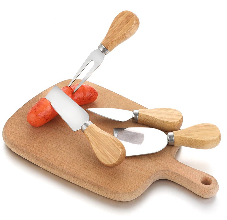 Rebanador De Madera De Acero Inoxidable Para Queso, Tabla Cortar Bambú Con Mango, Cuchillos Tenedor Pala, Herramienta De Cocina