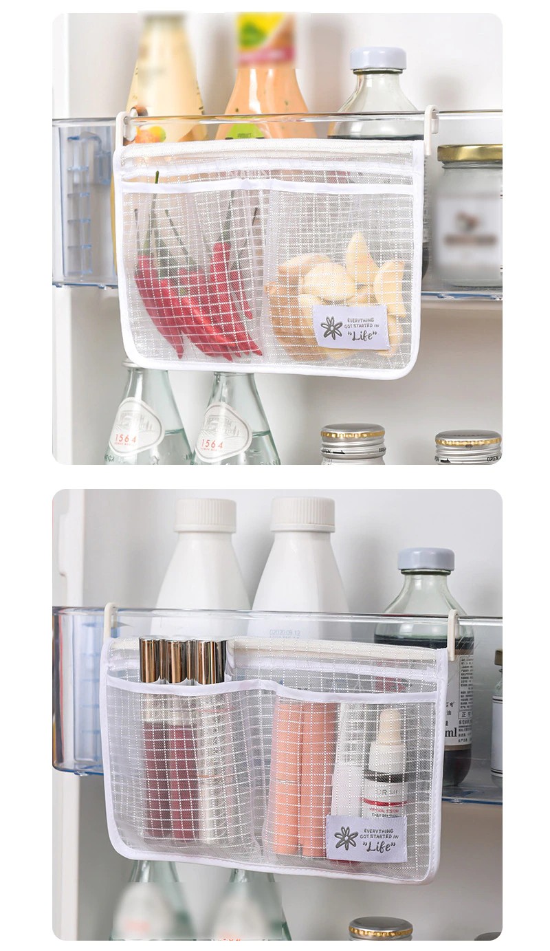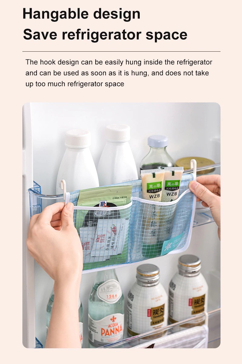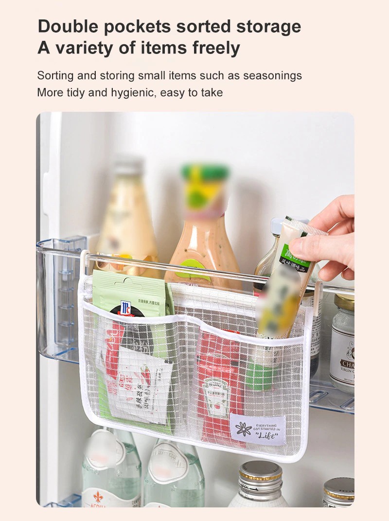 Bolsa Colgante De Malla Para La Nevera, Con Doble Compartimento, Para Almacenamiento Clasificación, Para El Hogar