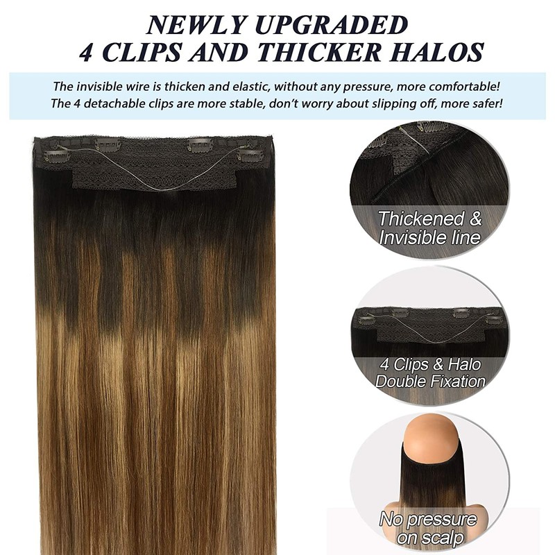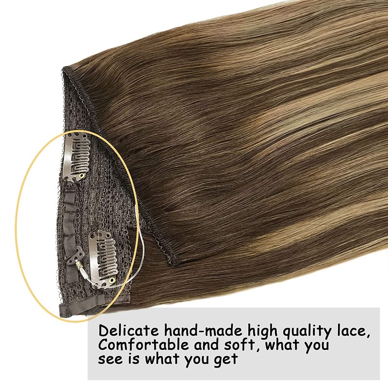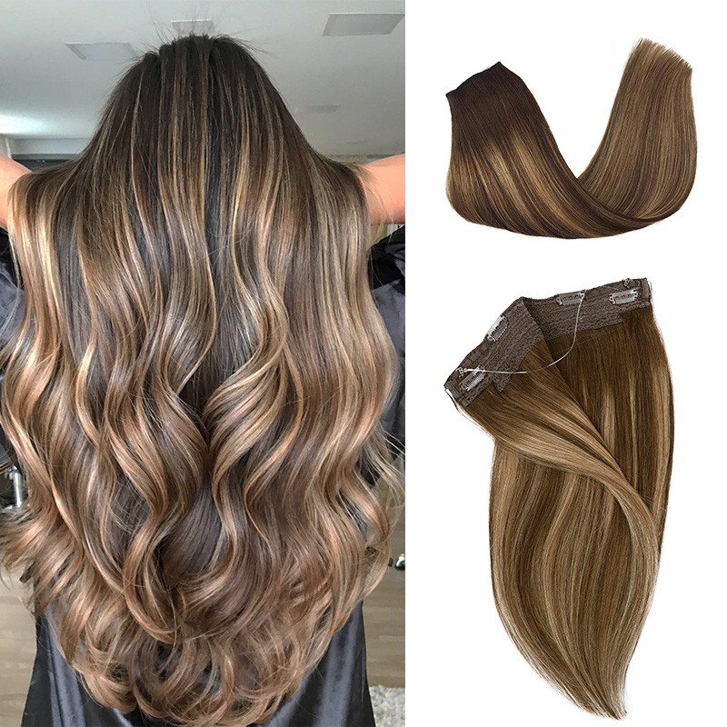 Extensiones De Cabello Liso Con Línea De Pescado, Extensiones Cabello Humano Invisible De Alambre Oculto, Pelo Remy Rubio Degradado Dorado