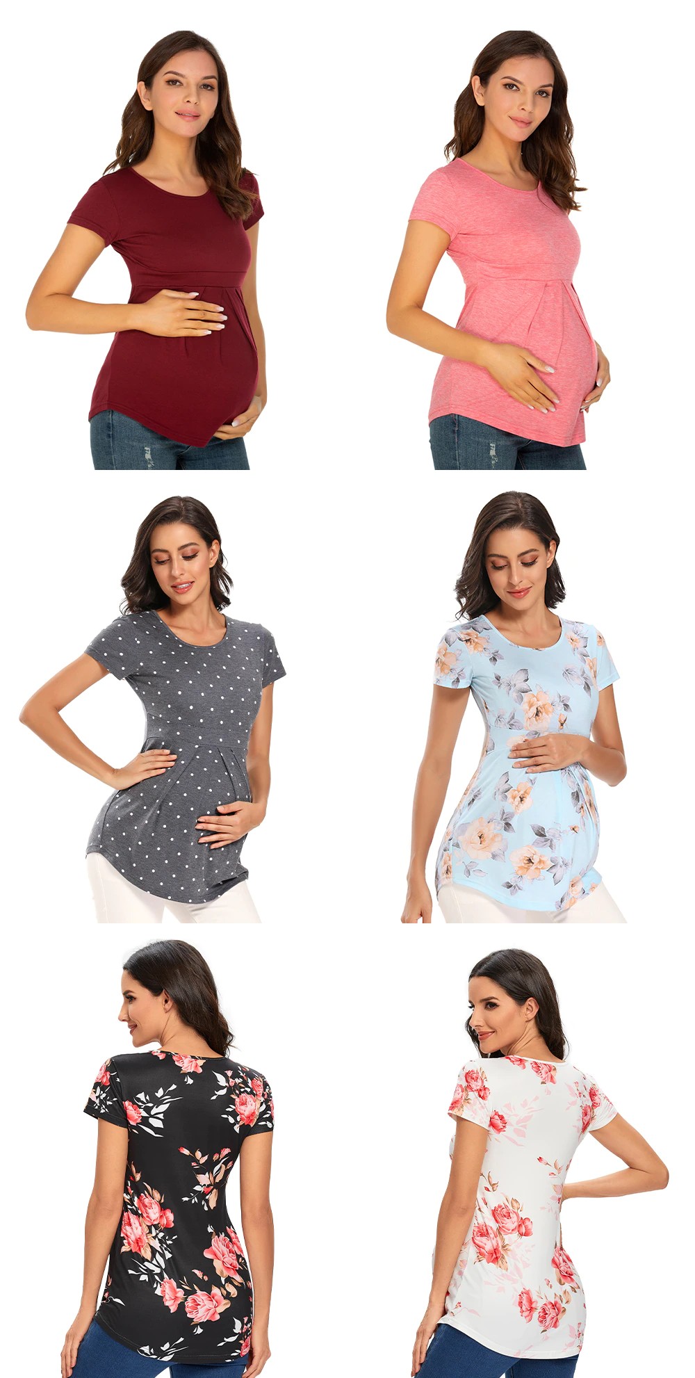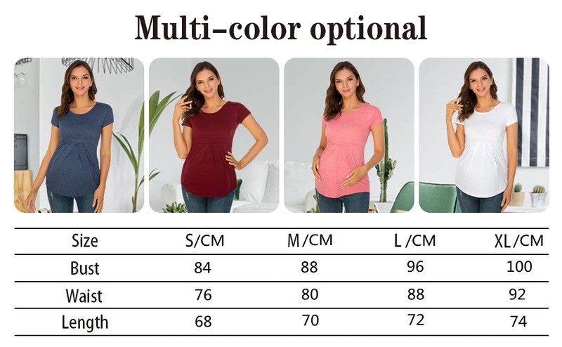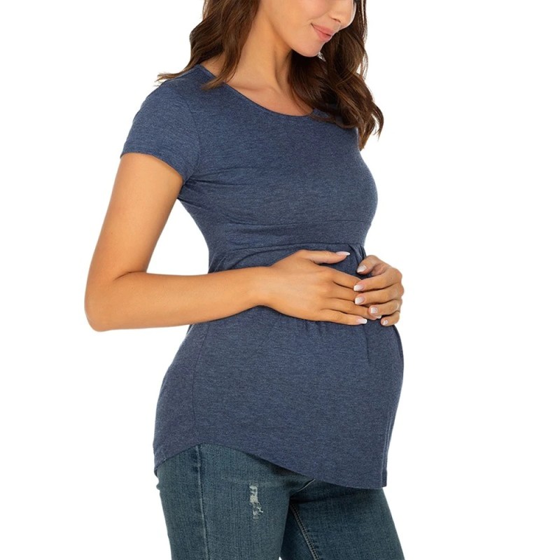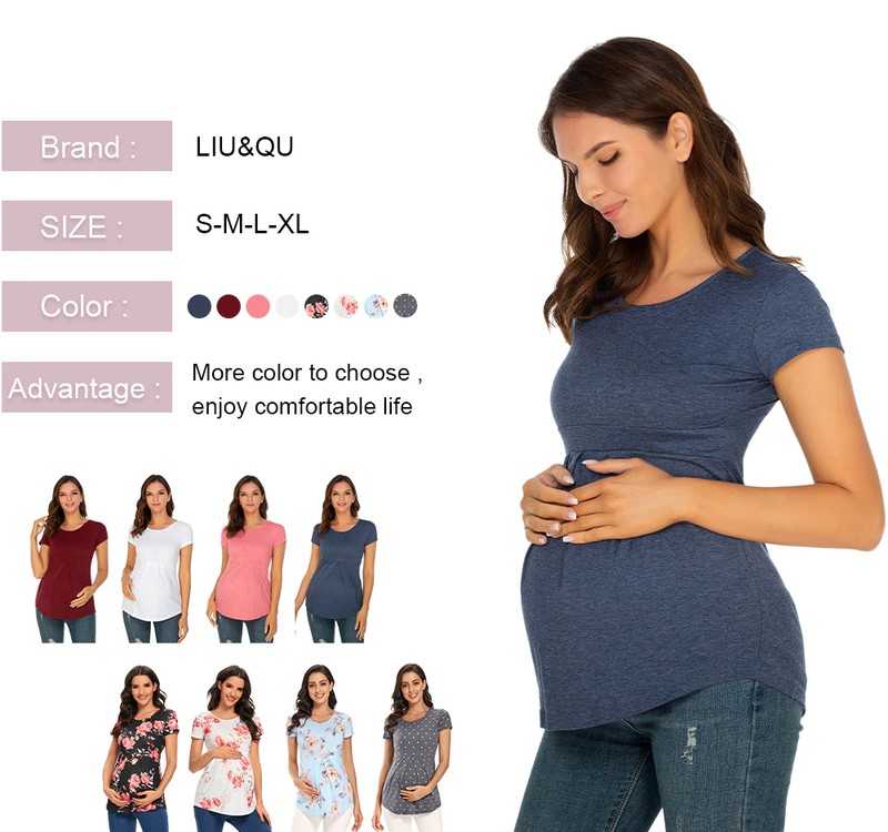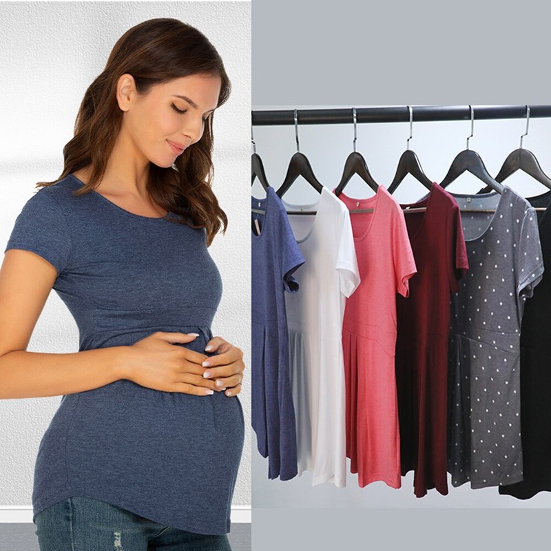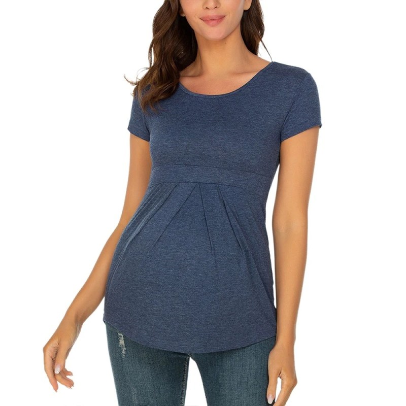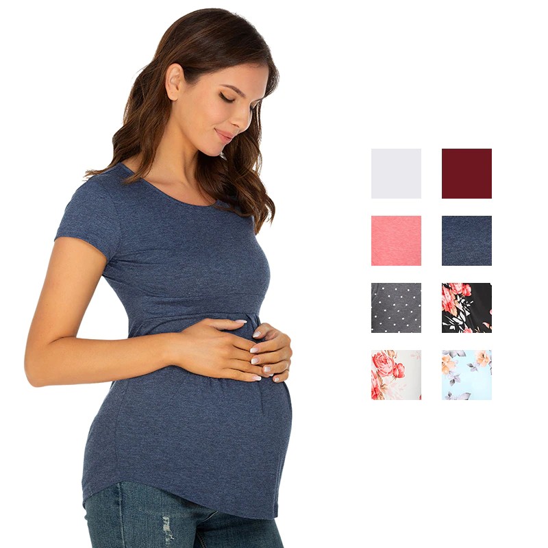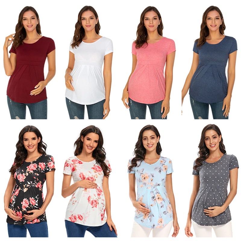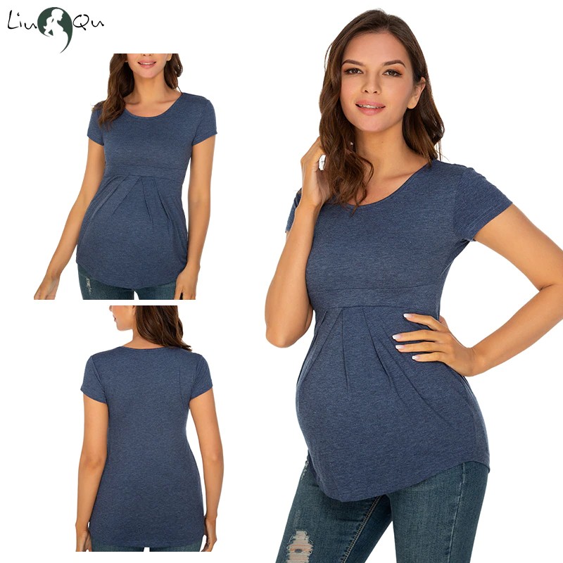 Tops de maternidad de verano, camisetas de manga corta para mujer, camisetas de moda para embarazadas, elegantes, con pliegues, ropa de mujer