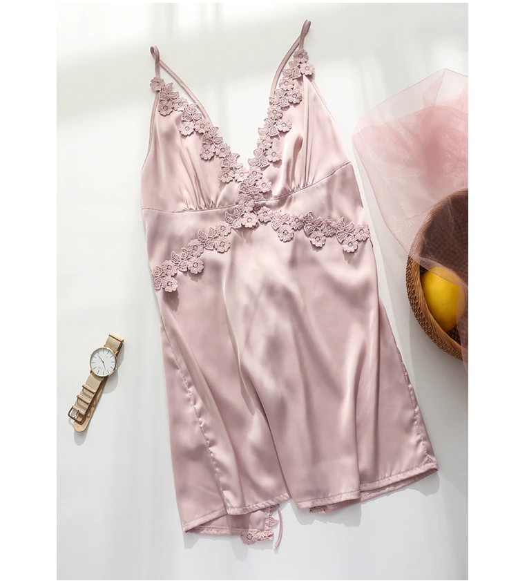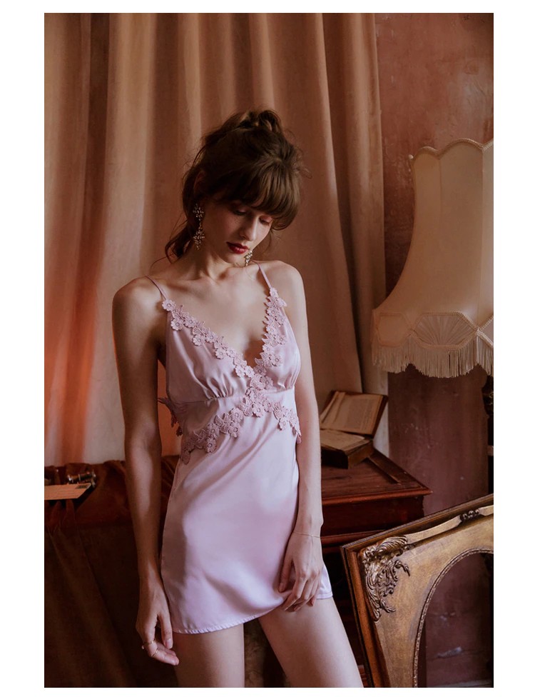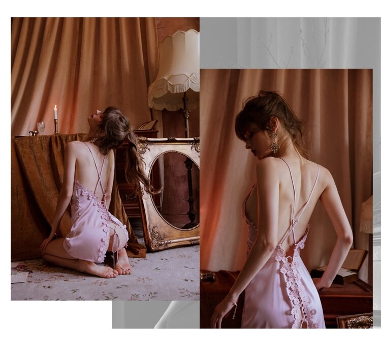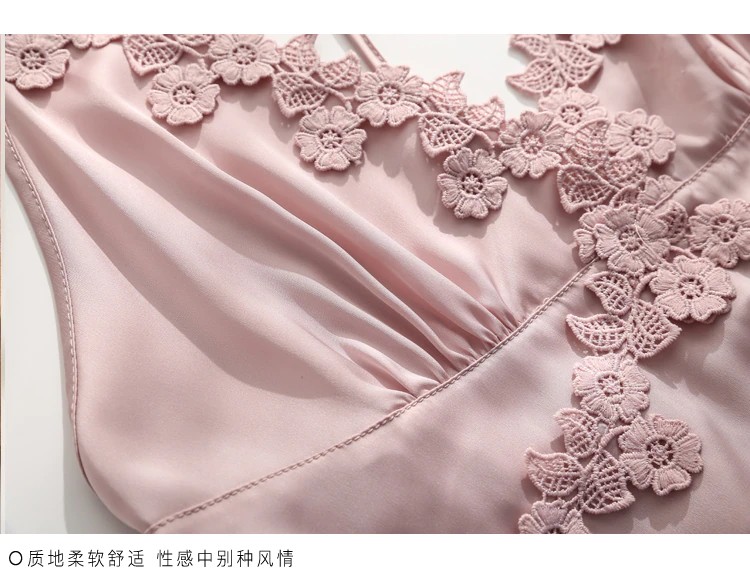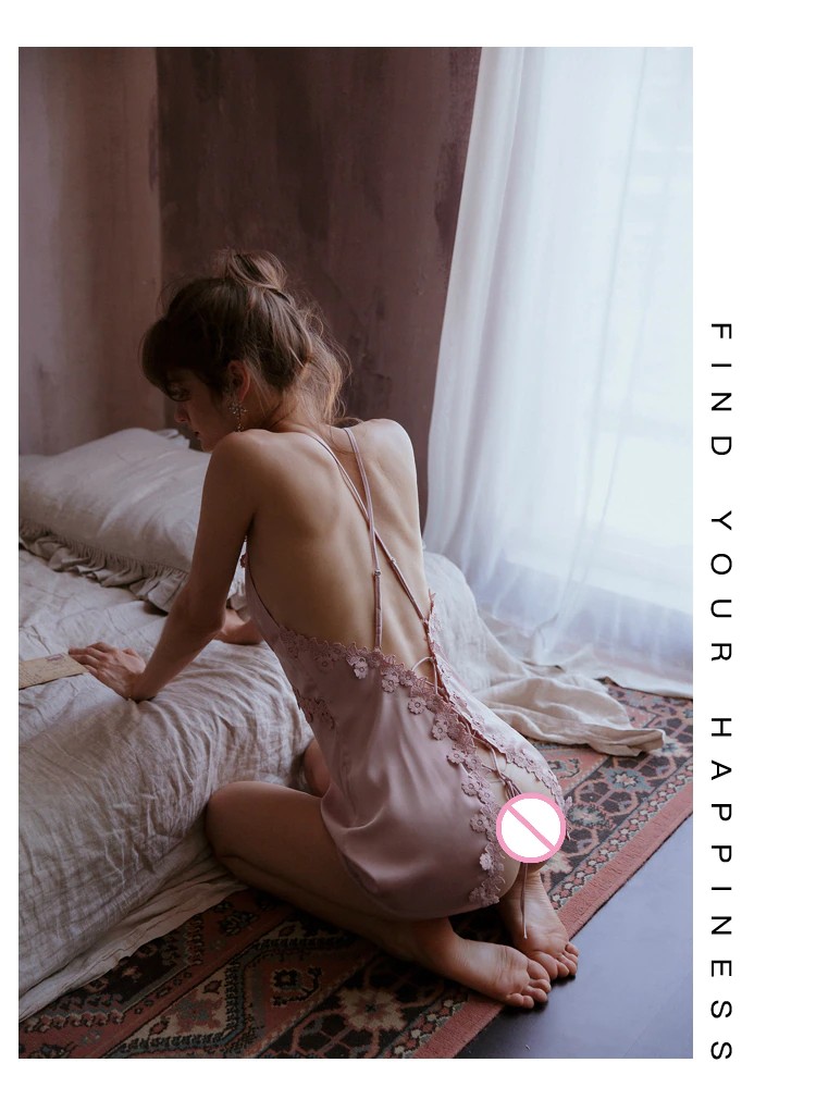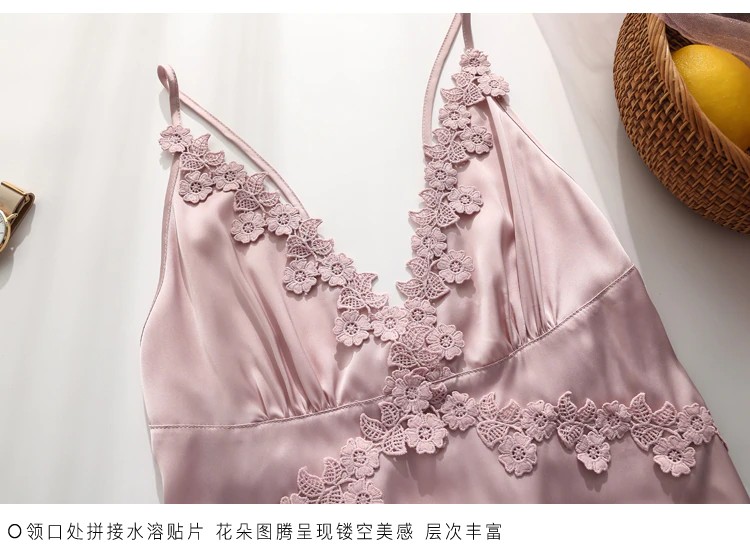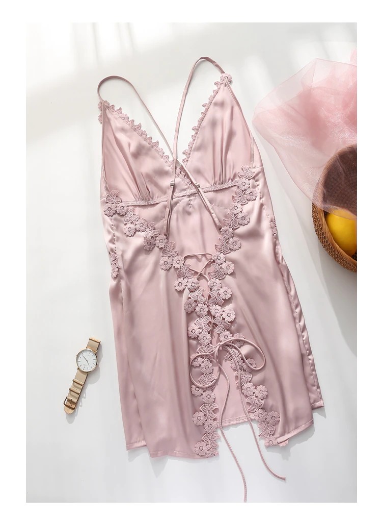 Camisón De Encaje Con Abertura En La Espalda Para Mujer, Ropa De Dormir Cómoda Con Flores, Cuello En V, Pijama Sedoso De Verano