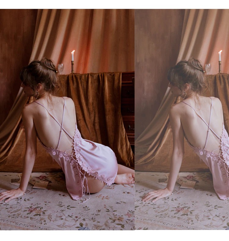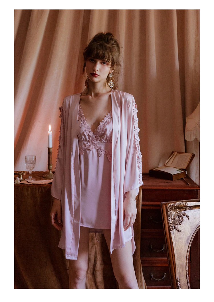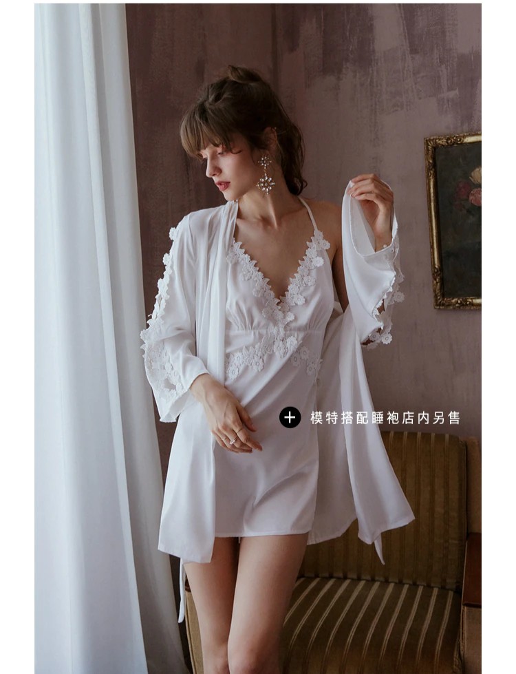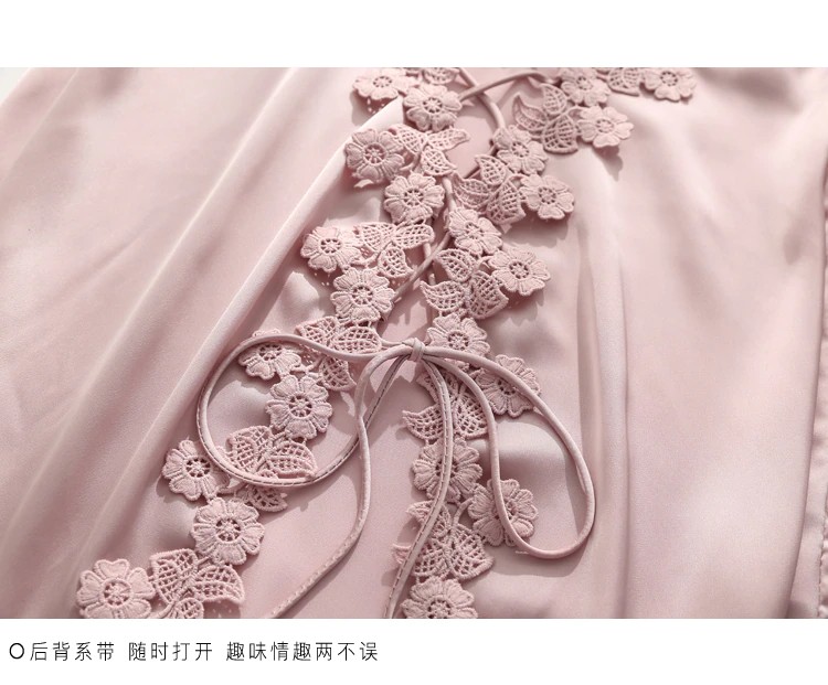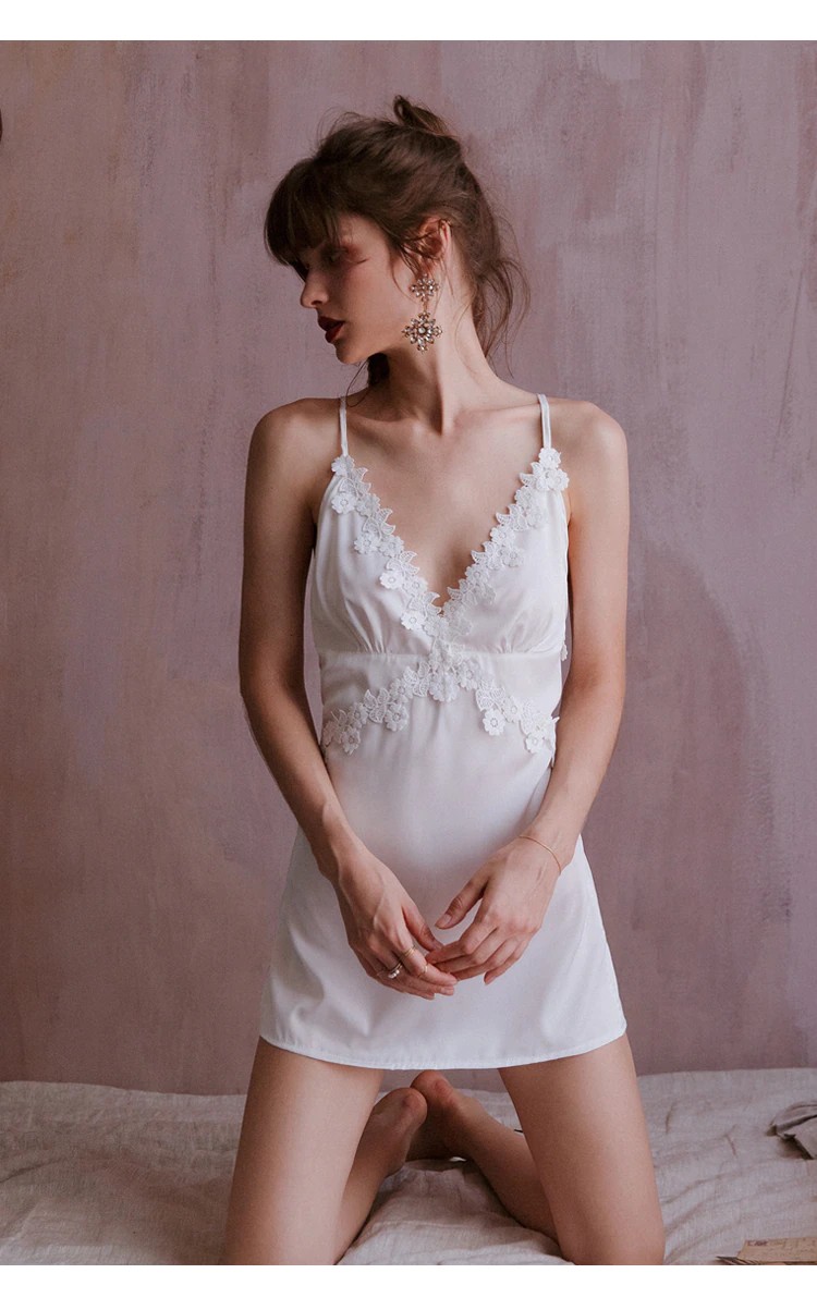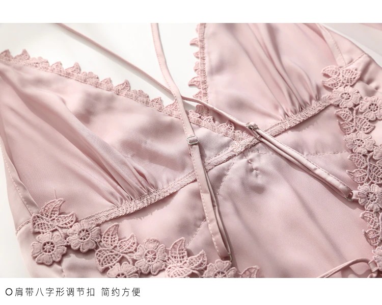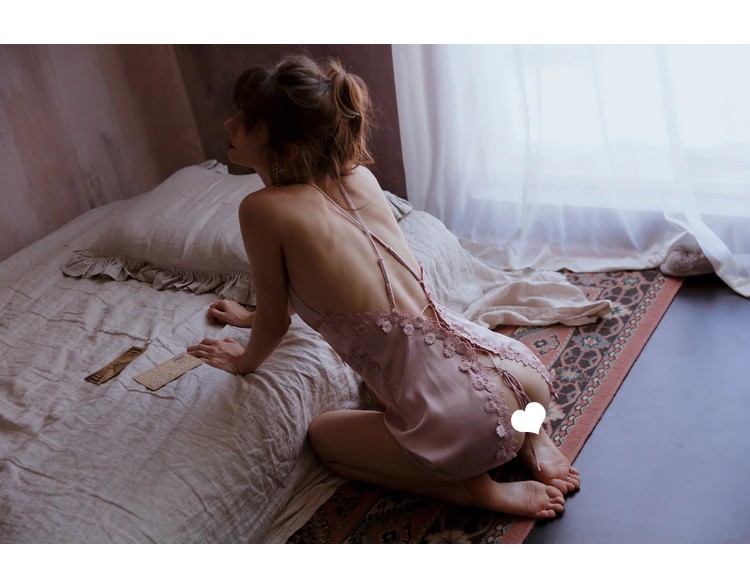 Camisón De Encaje Con Abertura En La Espalda Para Mujer, Ropa De Dormir Cómoda Con Flores, Cuello En V, Pijama Sedoso De Verano