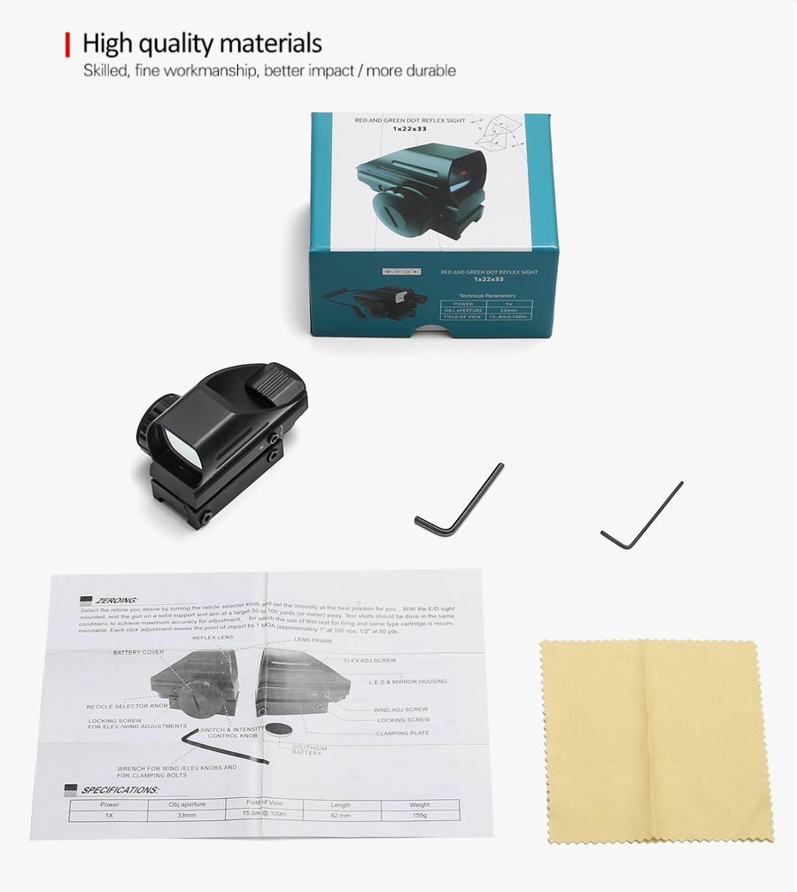 Mira Réflex Táctica Láser Rojo Verde, 4 Retículas Holográficas Proyectadas, Punto Rojo Alcance De Pistola De Aire Para Caza 20Mm, Montaje De Riel Ak