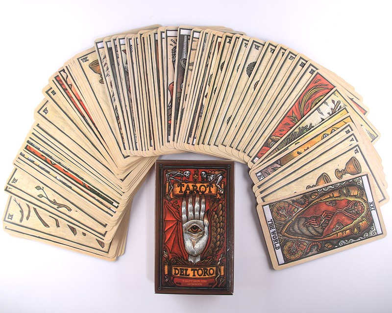 Deje que la fantástica visión de Enrique del Toro guíe su práctica de tarot con esta cubierta ilustrada sumérmicamente inspirada en el impresionante mundo del galardonado cineasta.