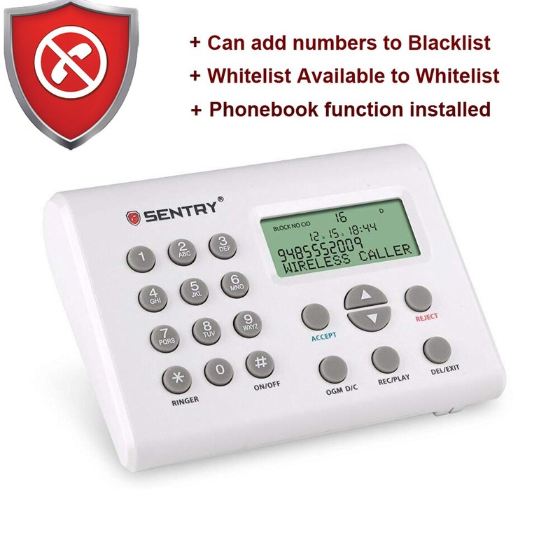 This telemarketer call blocker is the true meaning of 'silence is golden.Block 99% telemarketing calls. Features: ❖Automatically blocking features: works well in blocking all robo calls, election calls and telemarketer calls. ❖Big dialpad function: enter number manually with keypad, easy to use. ❖Record function: Record your own outgoing message, any langage is available,it's a new function. ❖wide compatible: RJ11 jack compatible with worldwide phones. ❖Simple to set up and use: support battery or phone line power. ❖Large capacity: Block 2000 numbers and area codes,2000 numbers up to 16 digits. How to install and operate? ❖How the Whitelist stop or block cold calls? --- When someone call you, they will hear warning voice and been asked if they are friendly to you. If they want to "touch" you, they need to press zero on their keypad and then their number will be added to Whitelist. ❖How to add a new number to Whitelist --- except callers pressing zero, you can add these numbers to Whitelist with keypad. Two ways both can keep the numbers on the Whitelist forever unless you remove it. ❖Some callers(include your family&friends and unwanted callers) made a call to you.Then they will hear the warning voice that said if you are telemarketers or solicitors or have any other purpose,pls hang up and remove our number from your lists, otherwise please press zero.95% unwanted callers will hang up from our survey.And your real callers just need to press zero and their numbers will been added to the white list automatically. ❖If there are some numbers that you won't keep it in the white list.You can kindly press the WHITE list button to find these numbers.You can remove them or just add them to BLACK list.)
