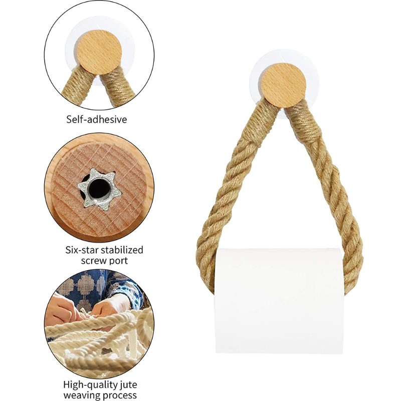 Portarrollos Vintage: Nuestro portarrollos de papel higiénico vintage está hecho de cuerda de Yute natural, perfecto para papel higiénico o toalla, diseño simple y mano de obra sólida.
