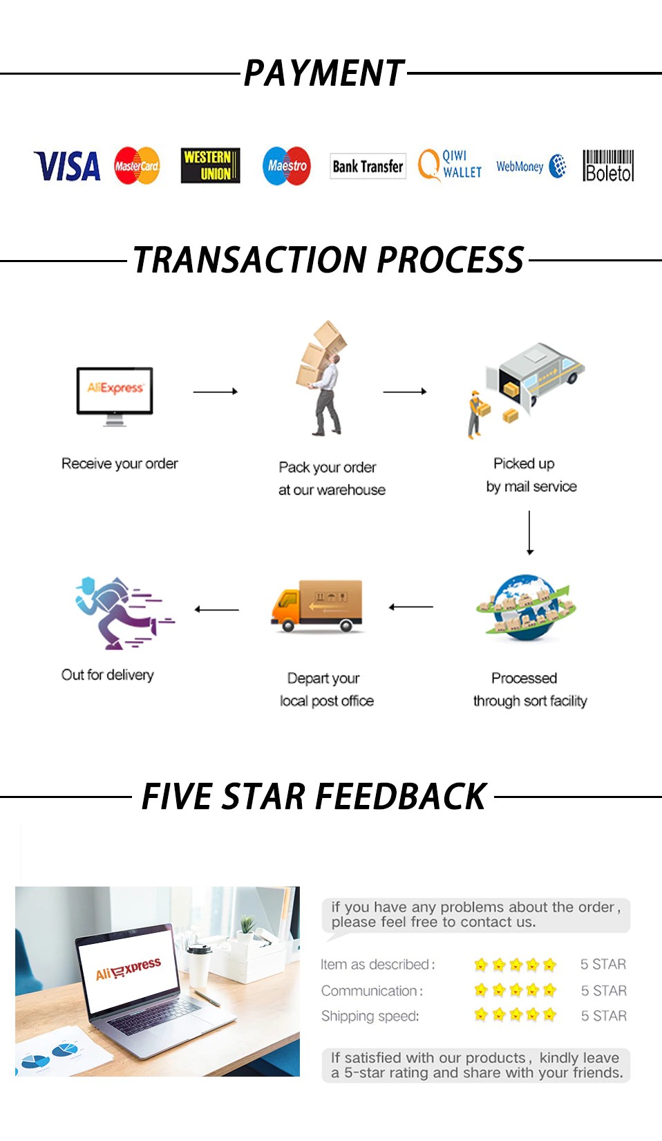 Por favor, tómate unos segundos para dejar una buena valoración si estás satisfecho con nuestro producto y servicio.(2). Contáctanos antes de dejar comentarios neutros (3 estrellas) o negativos (1-2 estrellas).