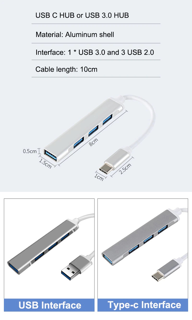 Hub Usb Tipo C 3, 0, Adaptador Divisor Múltiple De 4 Puertos Otg Para Lenovo Xiaomi Macbook Pro 13 15 Air Pro Pc, Accesorios De Ordenador
