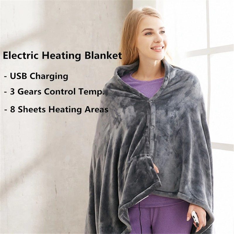 Chal Cálido Con Calefacción Por Usb, Manta De Felpa Con Calefacción Eléctrica, Capa Calentada, Manta De Regazo Franela De Coral