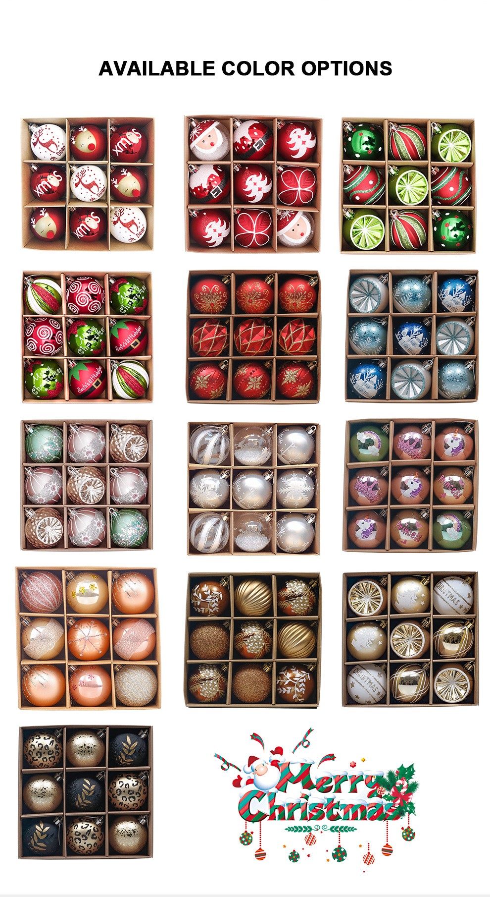 1. Diseño único: las bolas de Navidad se hacen en 4 acabados especiales: brillante, mate, brillante y remolino brillante.