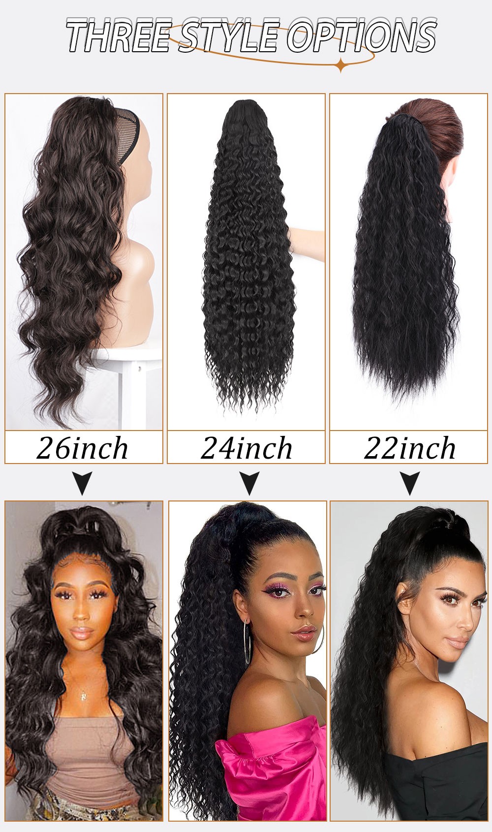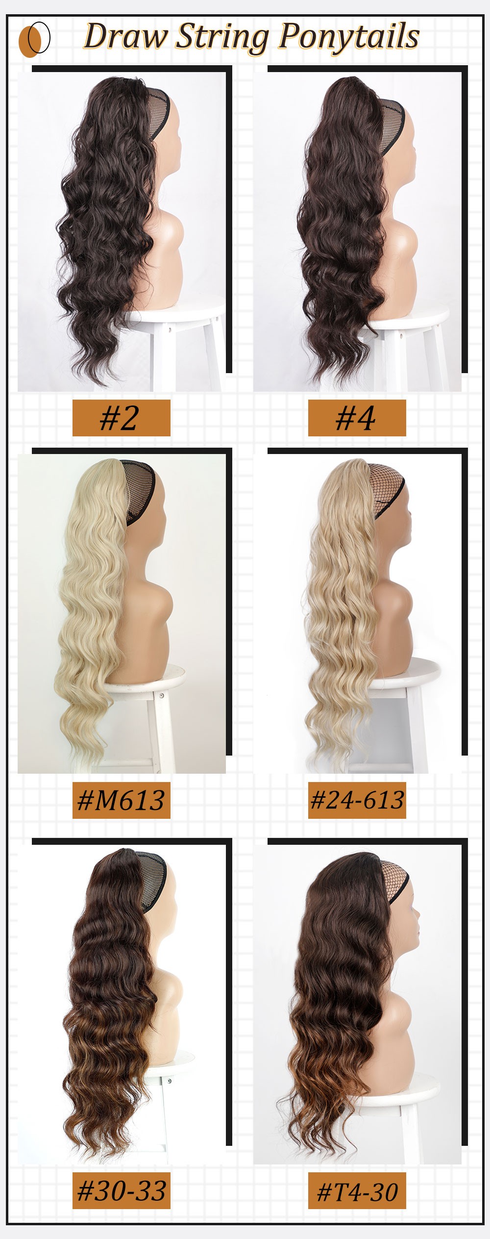 1. Tipo de producto: Cola de Caballo sintética ondulada de cuerpo largo