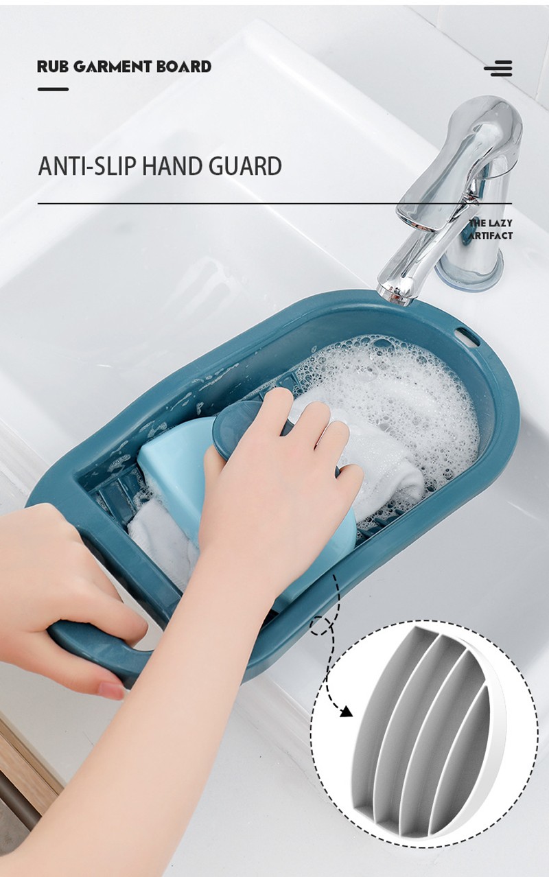 Protector de manos antideslizante, viene con almacenamiento de detergente en polvo, compacto y conveniente, almacenamiento conveniente, un Nuevo Reino de lavandería y mejora la calidad de vida. Espesamiento mejorado, lavamanos en forma de onda, descontaminación más económica, lavado más limpio, lavado de ropa personal, lavado más completo.