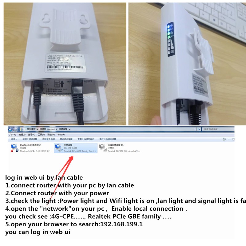 Tenga en cuenta: este enrutador es un enrutador 4g para exteriores, puede alcanzar un máximo de 100-200 m (Sin obstáculos), no es compatible con POE Power, solo admite 12V DC Power, gracias