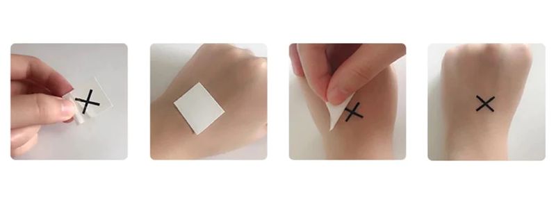 2. Limpia la superficie de la piel para que se seque, pon la etiqueta en tu parte favorita del cuerpo y moja todo el papel con humedad.