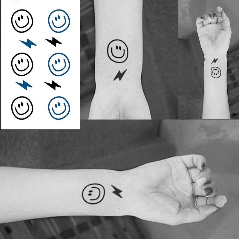 Pegatina De Tatuaje Temporal Impermeable, Maquillaje Corporal, Tatuajes De Dedo De Llama Smiley Negro Cuadrado Rosa Arte Floral, Tatuajes Pregrabados