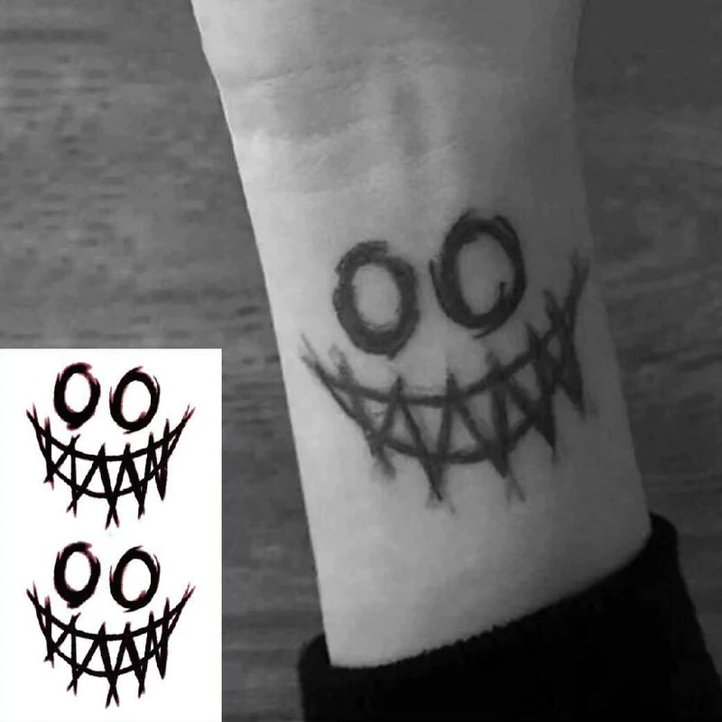 Pegatinas de tatuaje temporal black clown smiley face black square finger rose pegatinas de patrón para tatuaje para hombres, hombres y mujeres chica, tobillos, cuello y clavícula