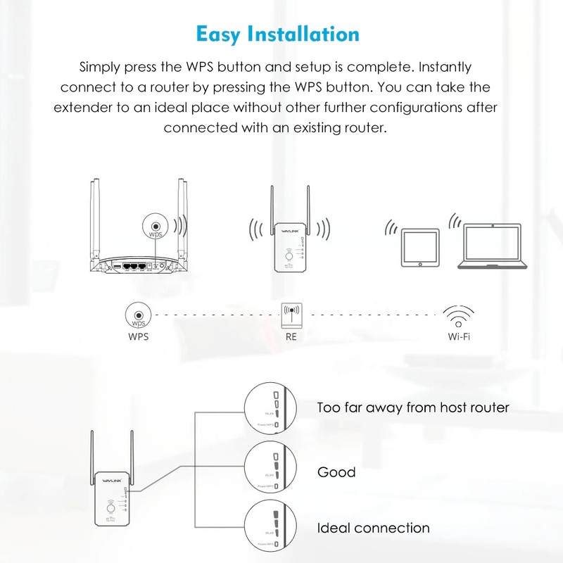 Wavlink-Repetidor Wifi Inalámbrico De Doble Banda, Extensor Wifi De 2, 4G Y 5G Enrutador Refuerzo Cobertura Wifi Fácil Instalación, Botón Wps Enchufe De Pared