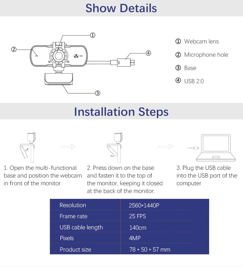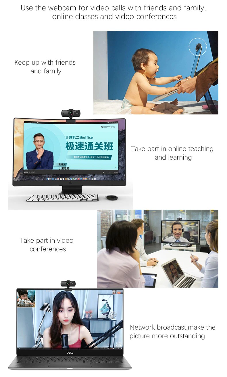 【HD 2K video】vídeo full HD, autofoco y corrección de luz avanzada para mantener llamadas de vídeo nítidas y nítidas.
