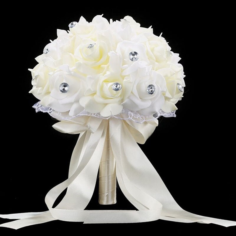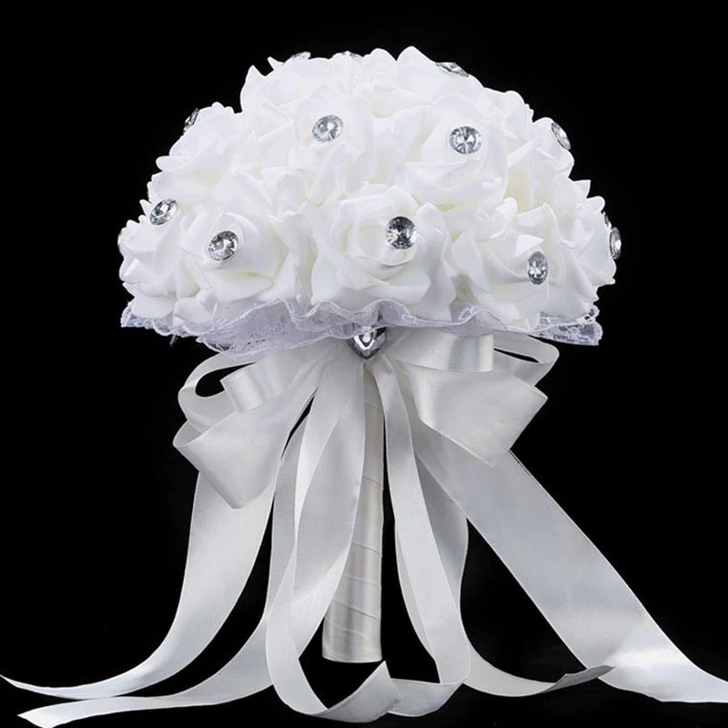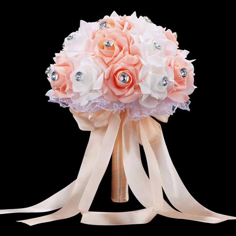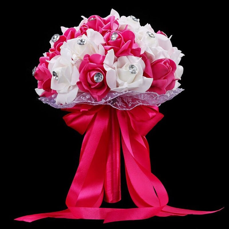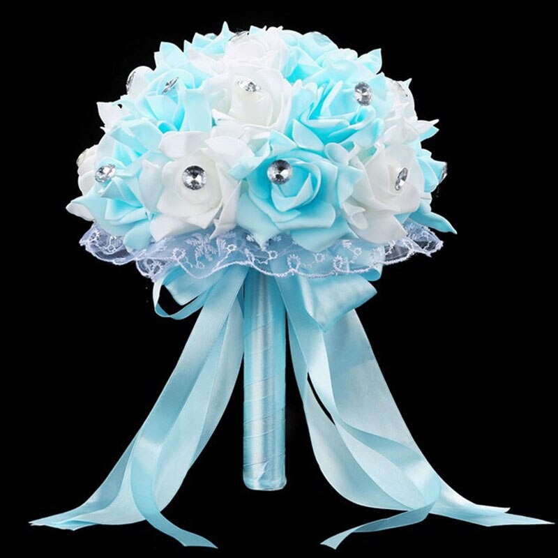 Ramo De Flores Artificiales Para Boda, Accesorios De Ramo Novia Azul Y Blanco, Hecho A Mano Rosa, Ramos De Novia
