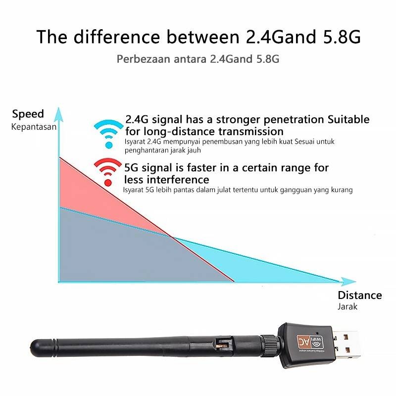 * Diseñado para ser Compatible con 2,4 GHZ y 5,8 GHZ, la velocidad de transmisión máxima de 2,4 GHZ puede ser de hasta 150 Mbps, 5,8 GHZ puede ser de hasta 433 Mbps.