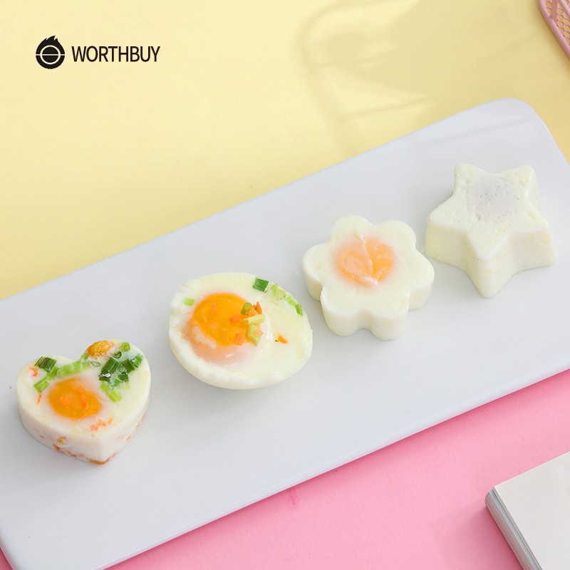 WORTHBUY 4 unids/set lindas herramientas de cocina de huevos con cepillo hervidor de huevos de plástico para niños, molde para hornear huevos, accesorios de cocina