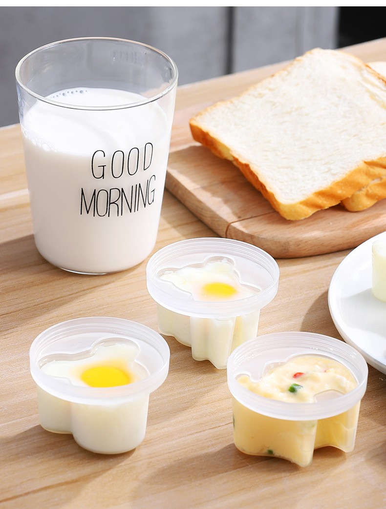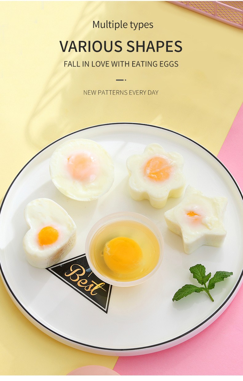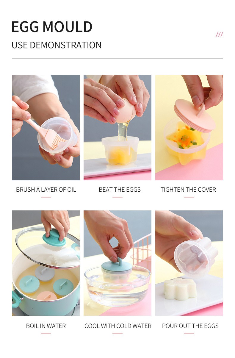 【Cómo usar】 la operación es simple. Cubra el molde de huevo con aceite comestible, golpee los huevos y colóquelos en agua hirviendo a 100 ° C para cocinar. Puede obtener rápidamente el molde de huevo.