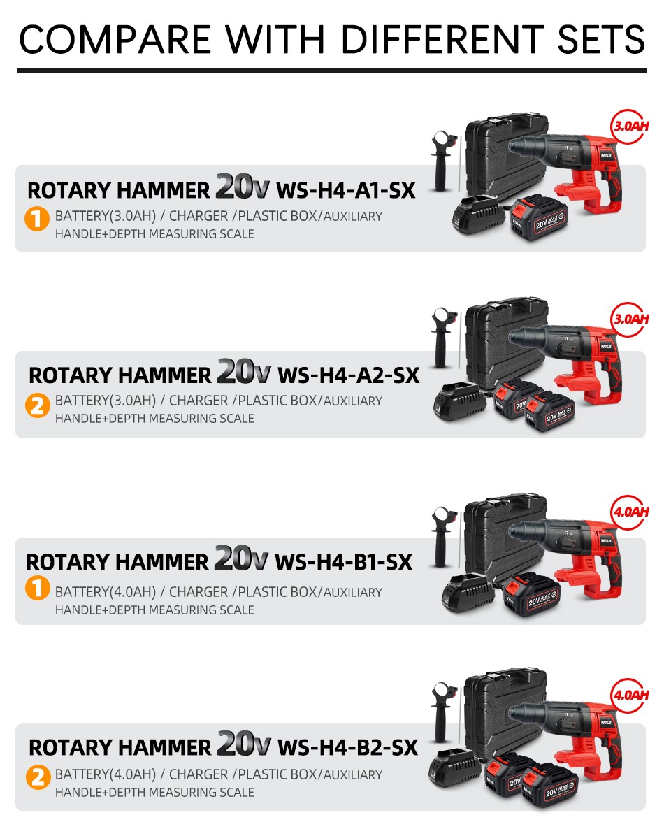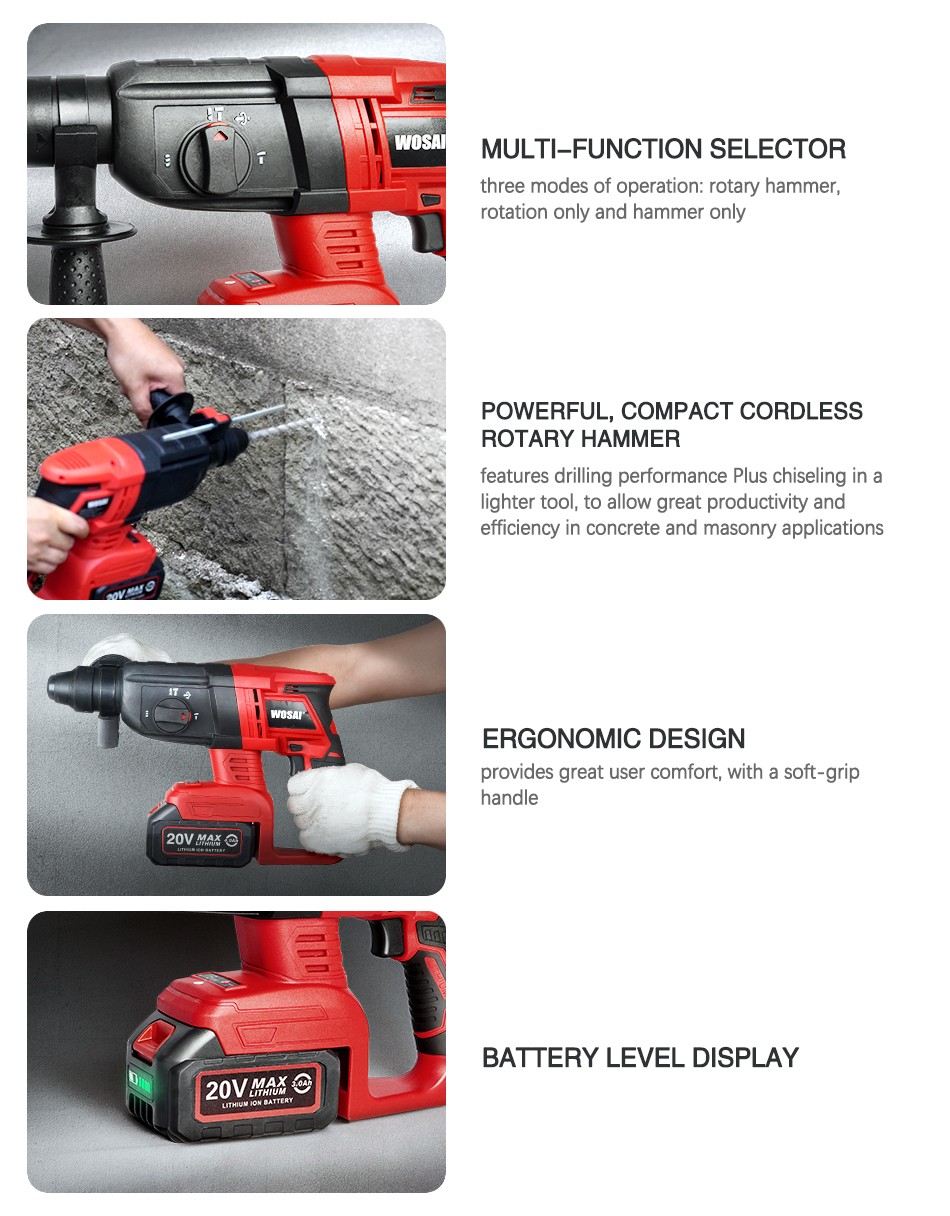 Wosai-Taladro Eléctrico E Inalámbrico, 20V, Martillo Que Gira, Motor Sin Escobillas