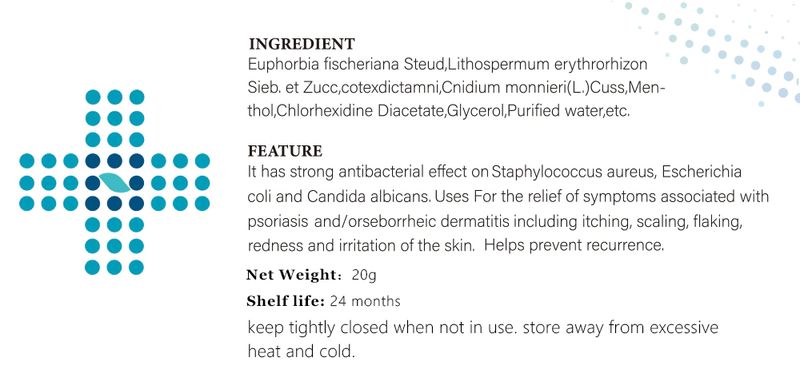 Euphorbia fisliana Steud,Lithospermum erithhorhizon Sieb. et Zucc,cotexdictamni,Cnidium monnieri(L.)Cuss, mentol, diacetato clorhexidina, glicerol, agua purificada, etc.