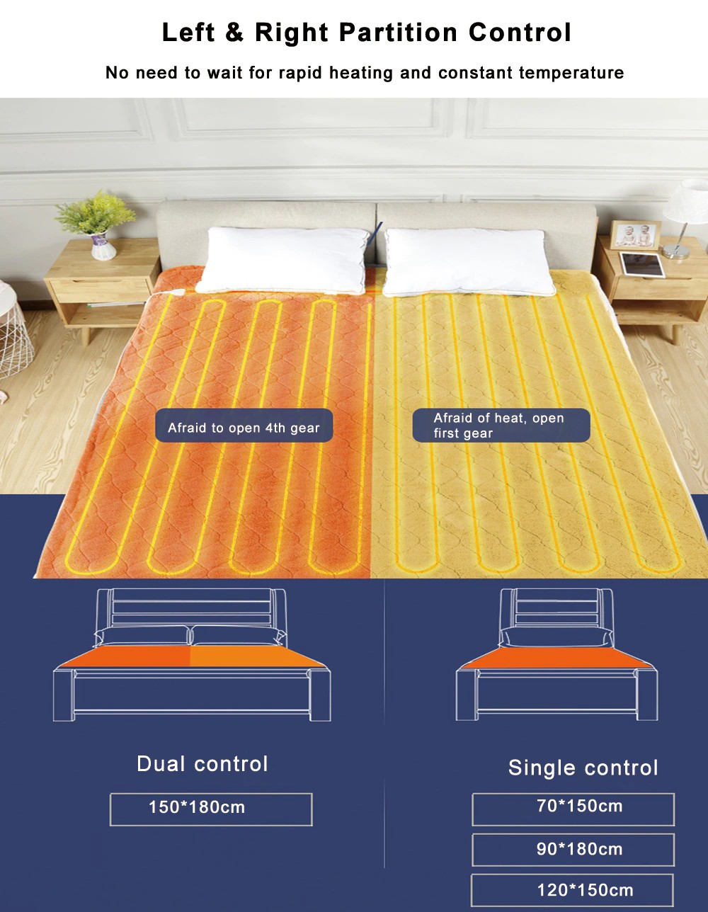 Note:Please put your thick quilt,Cover the electric blanket about 30-60minutes, or the temperature go up not obviously.