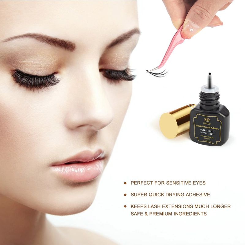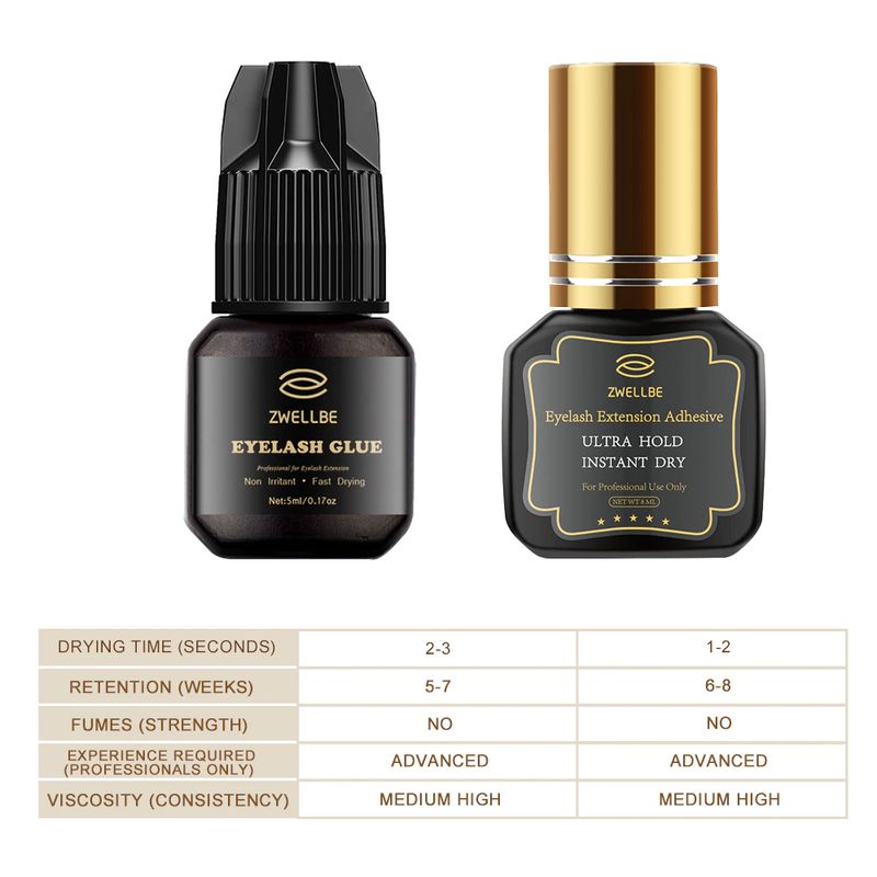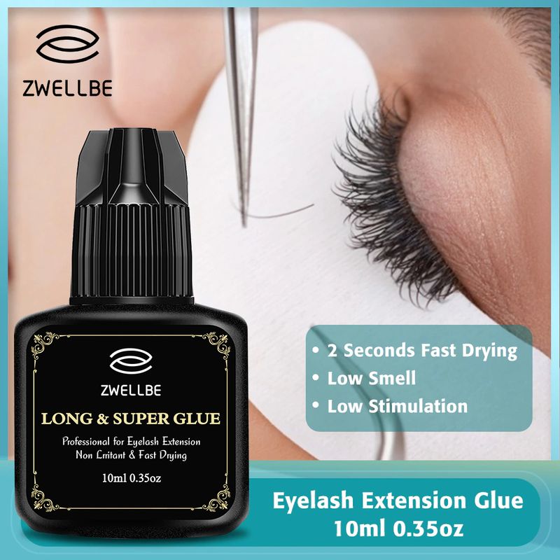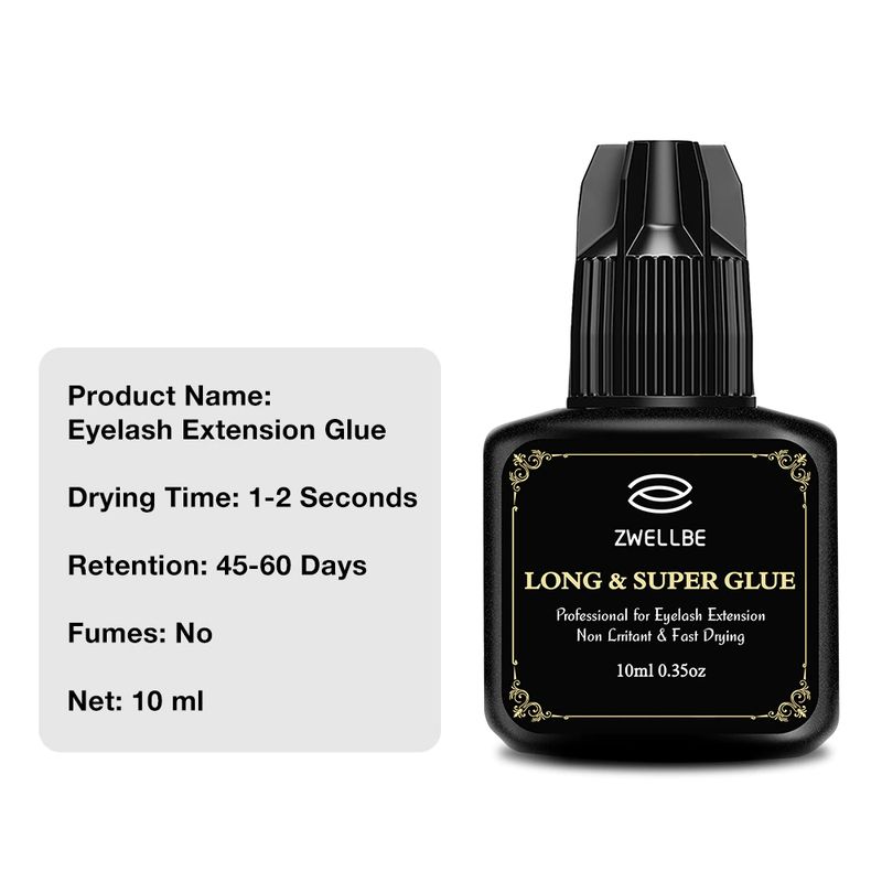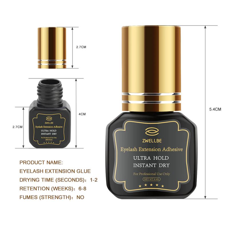 zwellbe Eyelash Extension Glue 1-2 Seconds Fast Drying 8ml Eyelashes Glue Professional Black Adhesive Retention 30Days